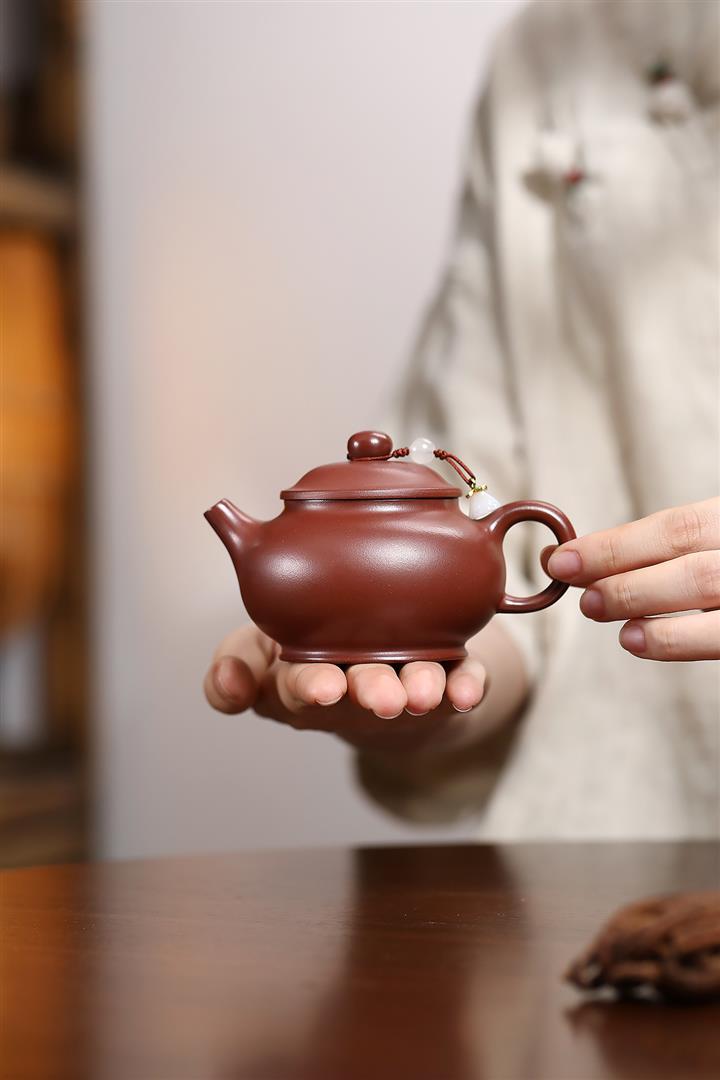 【作品介紹】此款壺形線條流暢,壺把,壺嘴,壺身壹氣呵成栩栩如生,是收藏把玩的好壺,泥料色澤古樸典雅,日久使用,漸露鋒芒,養成變化快,溫潤莊重,用其泡茶,使用的年代久,壺身就溫潤,泡出來的茶湯也就醇郁芳馨。