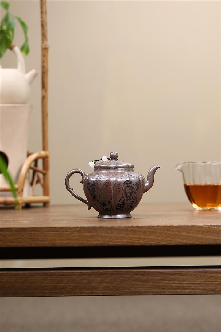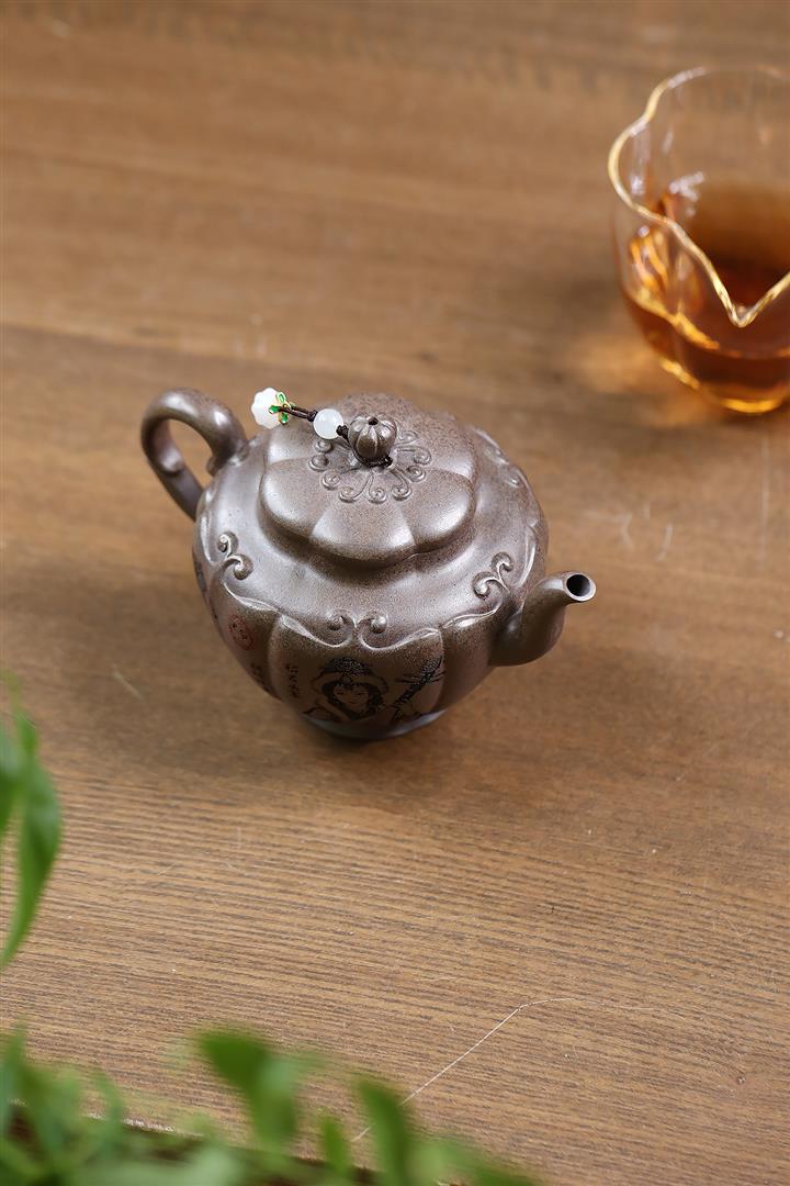 原礦百目紫泥多子多福漢瓦茶壺POT7895