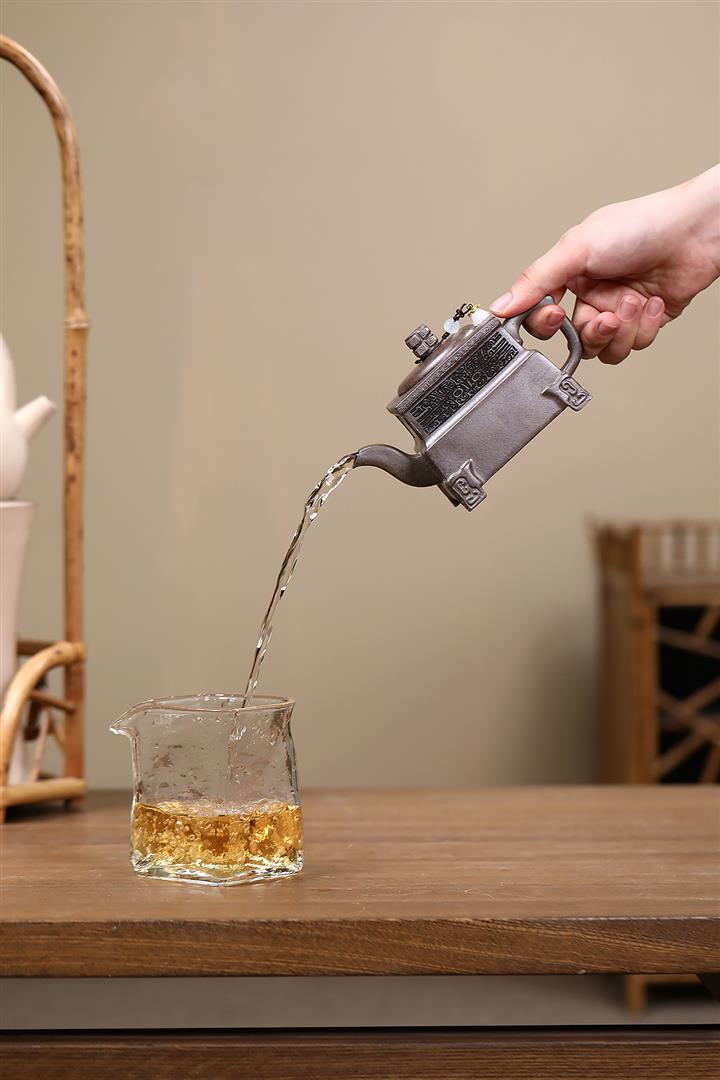 【泥料特點】砂土氣重,似淳實農民,日久使用,漸露鋒芒,養成變化,溫潤莊重。紫砂是壹種雙重氣孔結構的多孔性材質,氣孔微細,密度高。用紫砂壺沏茶,不失原味,且香不渙散,得茶之真香真味。紫砂使用越久,壺身色澤越發光亮照人,氣韻溫雅。紫砂壺長久使用器身會因撫摸擦拭,變得越發溫潤光澤