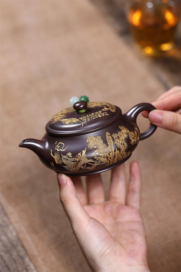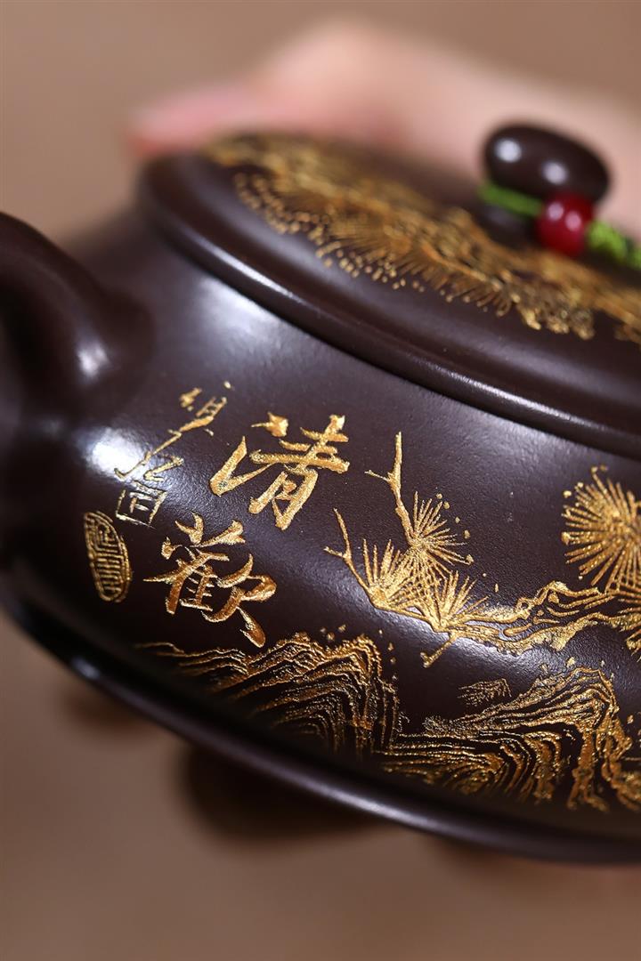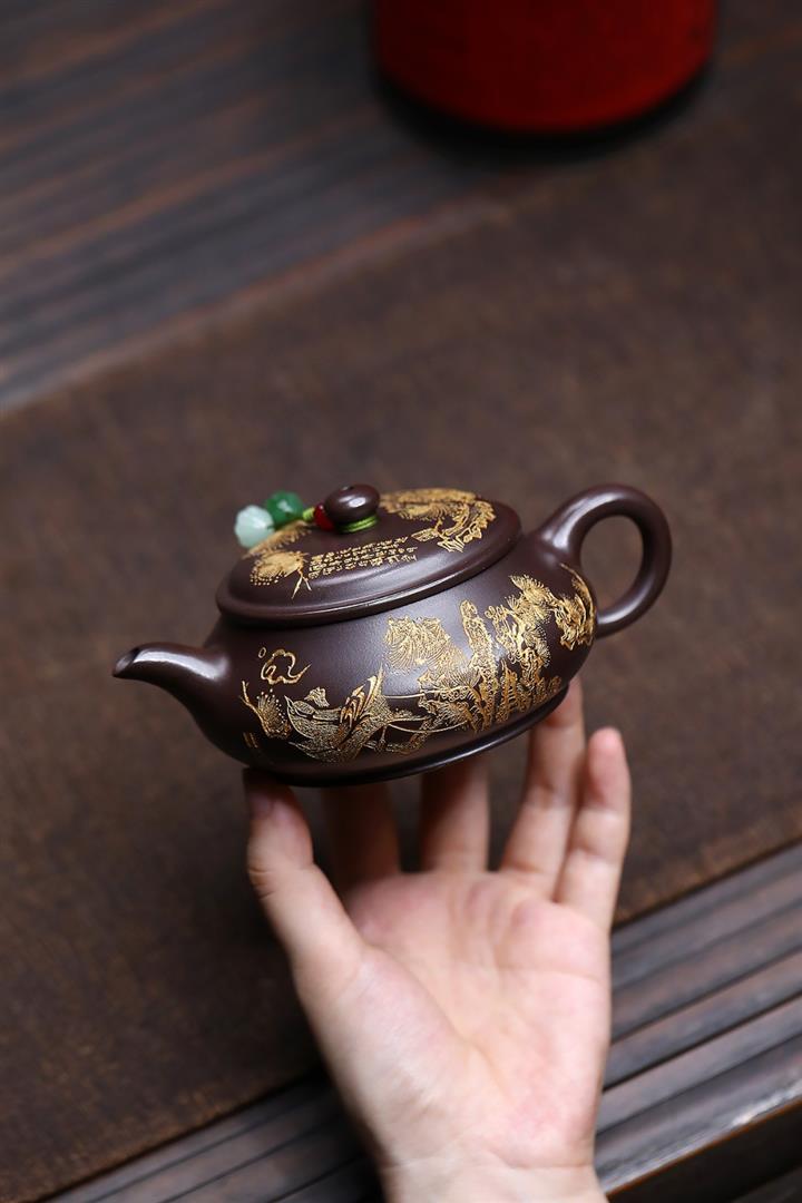 【作品介紹】此款壺形線條流暢,壺把,壺嘴,壺身壹氣呵成栩栩如生,是收藏把玩的好壺,泥料色澤古樸典雅,日久使用,漸露鋒芒,養成變化快,溫潤莊重,用其泡茶,使用的年代久,壺身就溫潤,泡出來的茶湯也就醇郁芳馨。