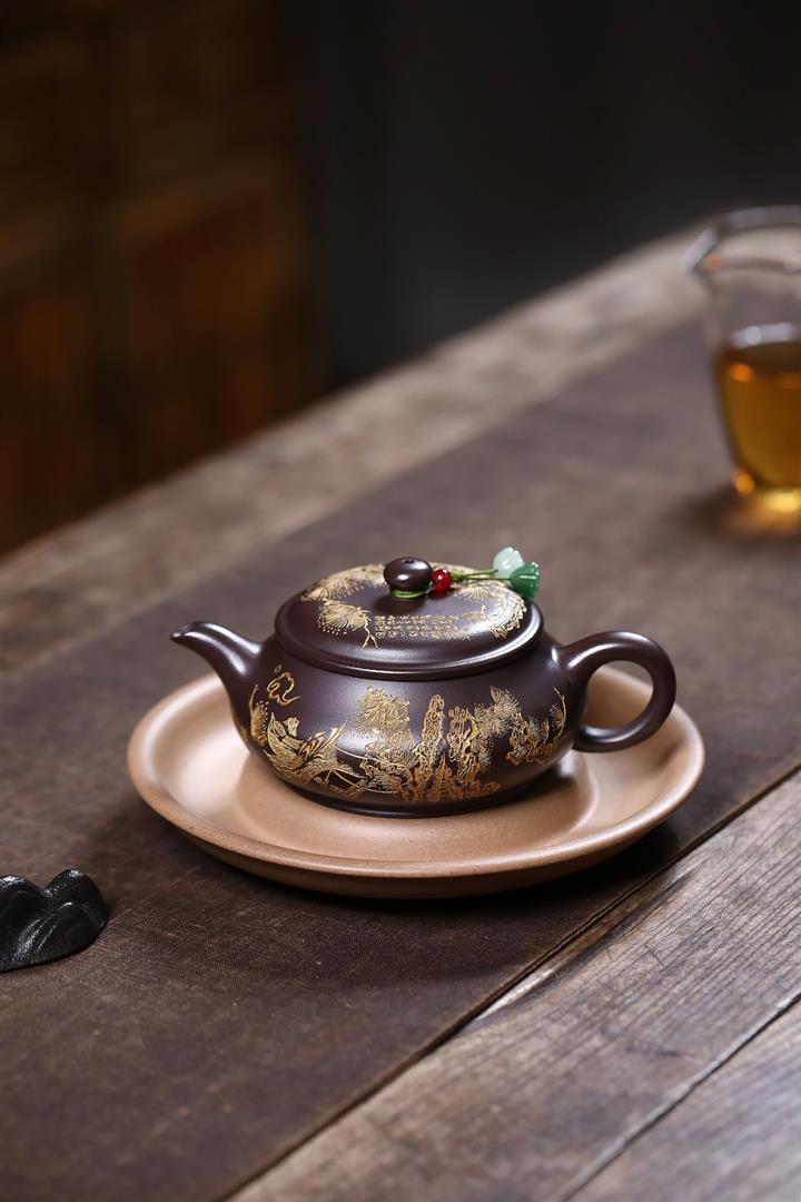 【泥料特點】砂土氣重,似淳實農民,日久使用,漸露鋒芒,養成變化,溫潤莊重。紫砂是壹種雙重氣孔結構的多孔性材質,氣孔微細,密度高。用紫砂壺沏茶,不失原味,且香不渙散,得茶之真香真味。紫砂使用越久,壺身色澤越發光亮照人,氣韻溫雅。紫砂壺長久使用器身會因撫摸擦拭,變得越發溫潤光澤。