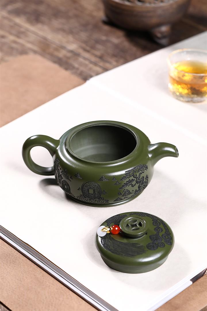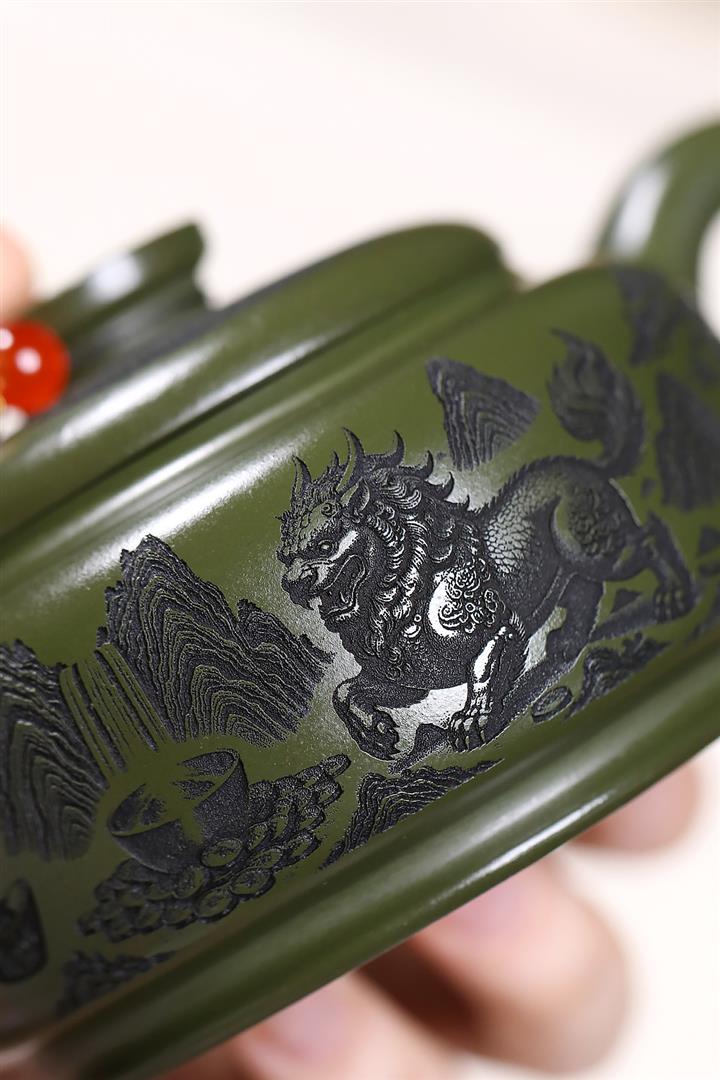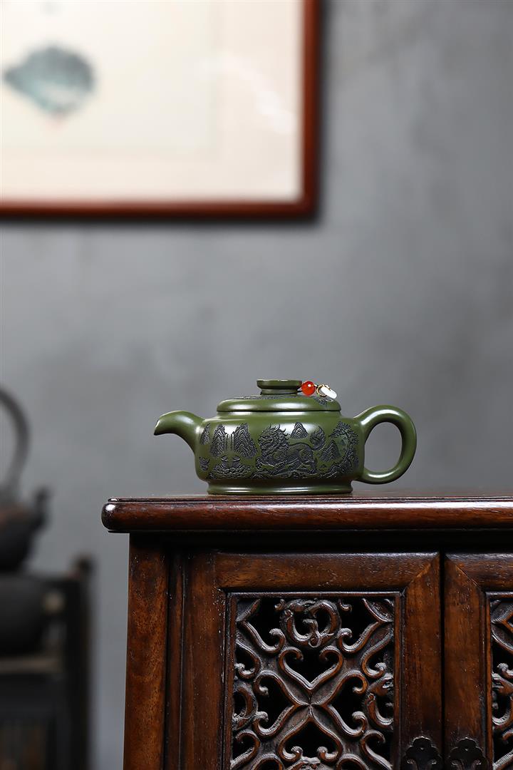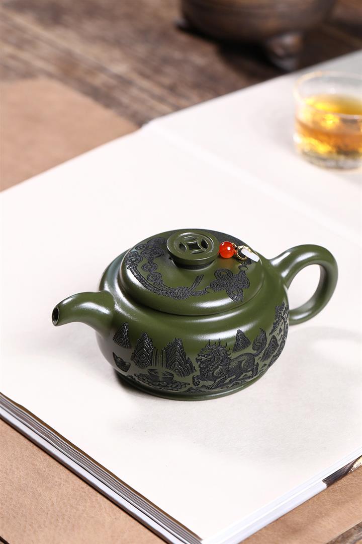原礦綠泥浮雕魚躍龍門泡茶壺POT7901