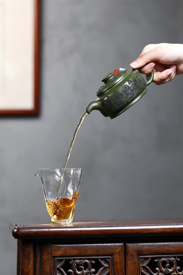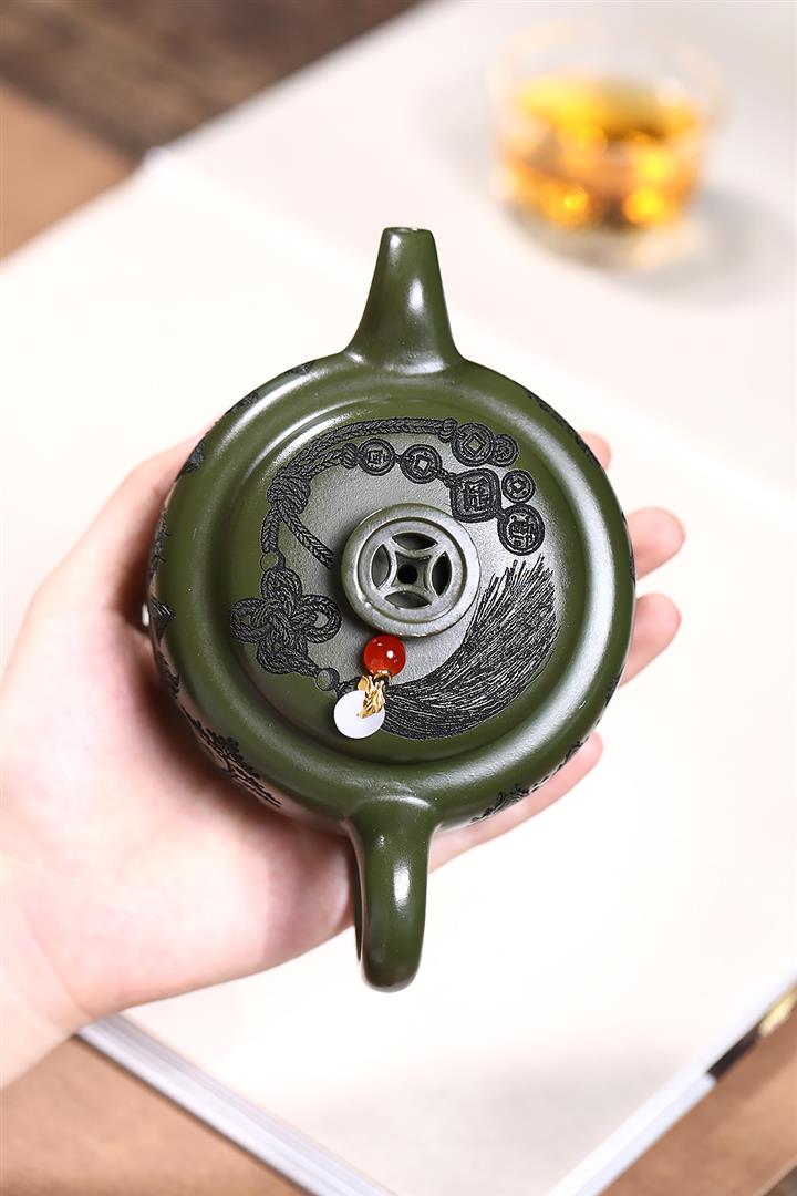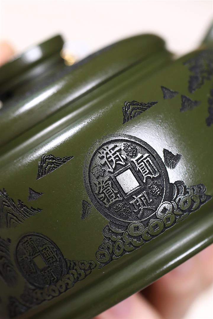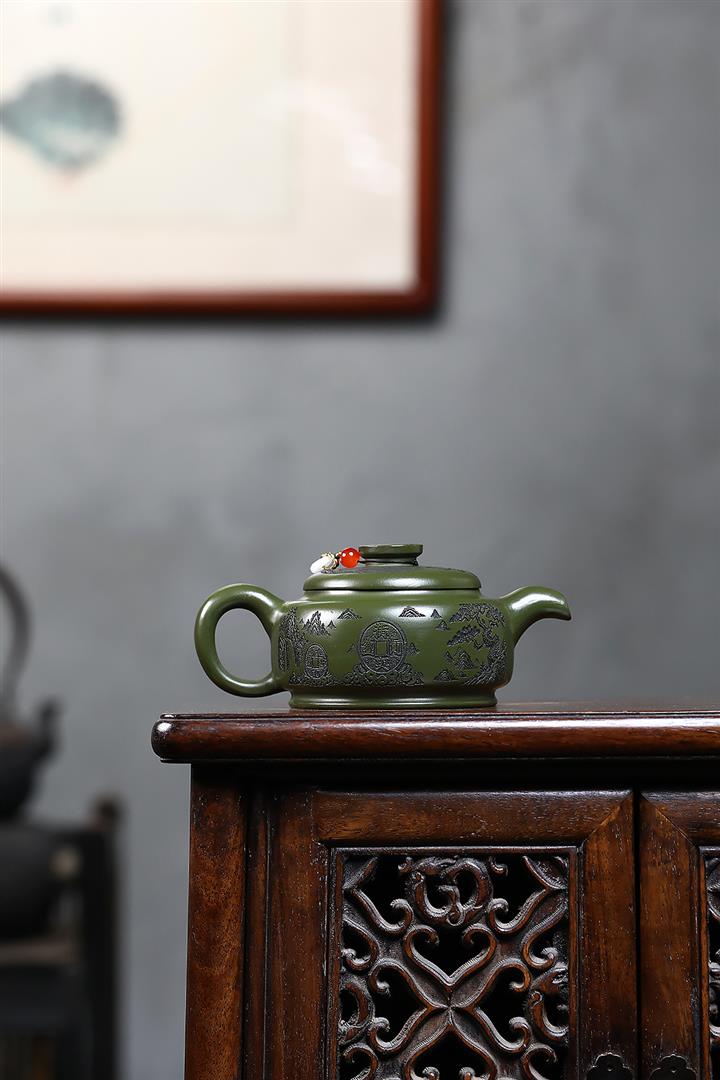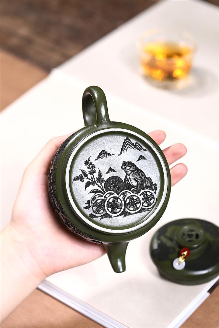 原礦綠泥浮雕魚躍龍門泡茶壺POT7901