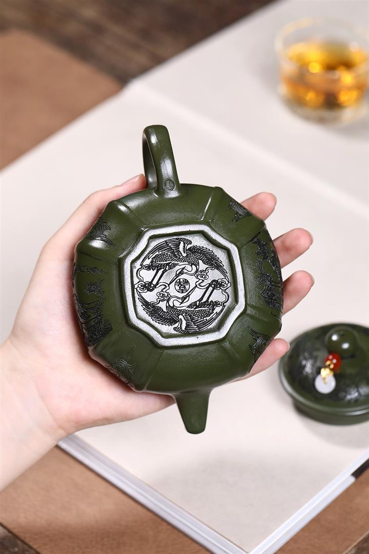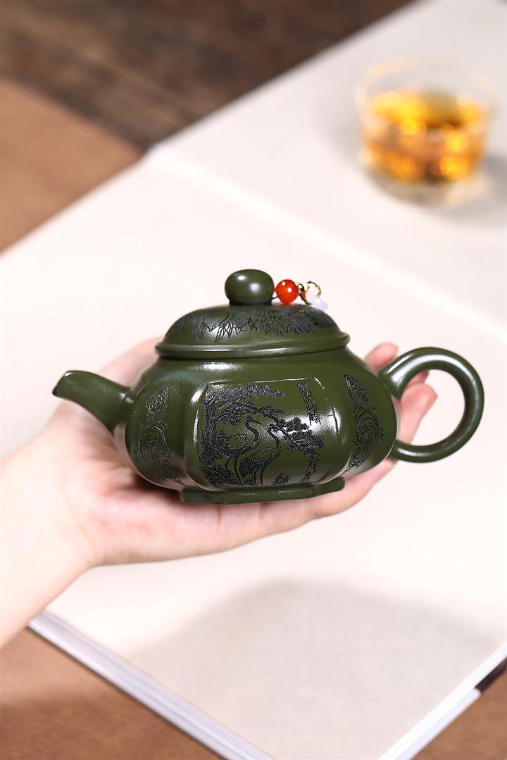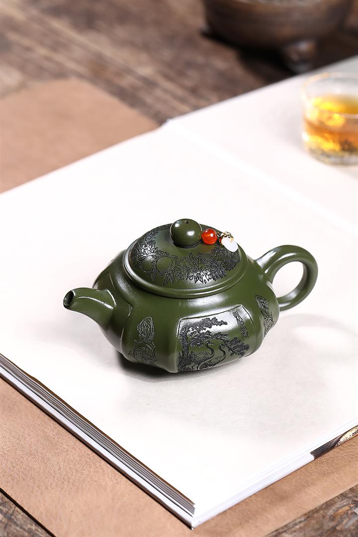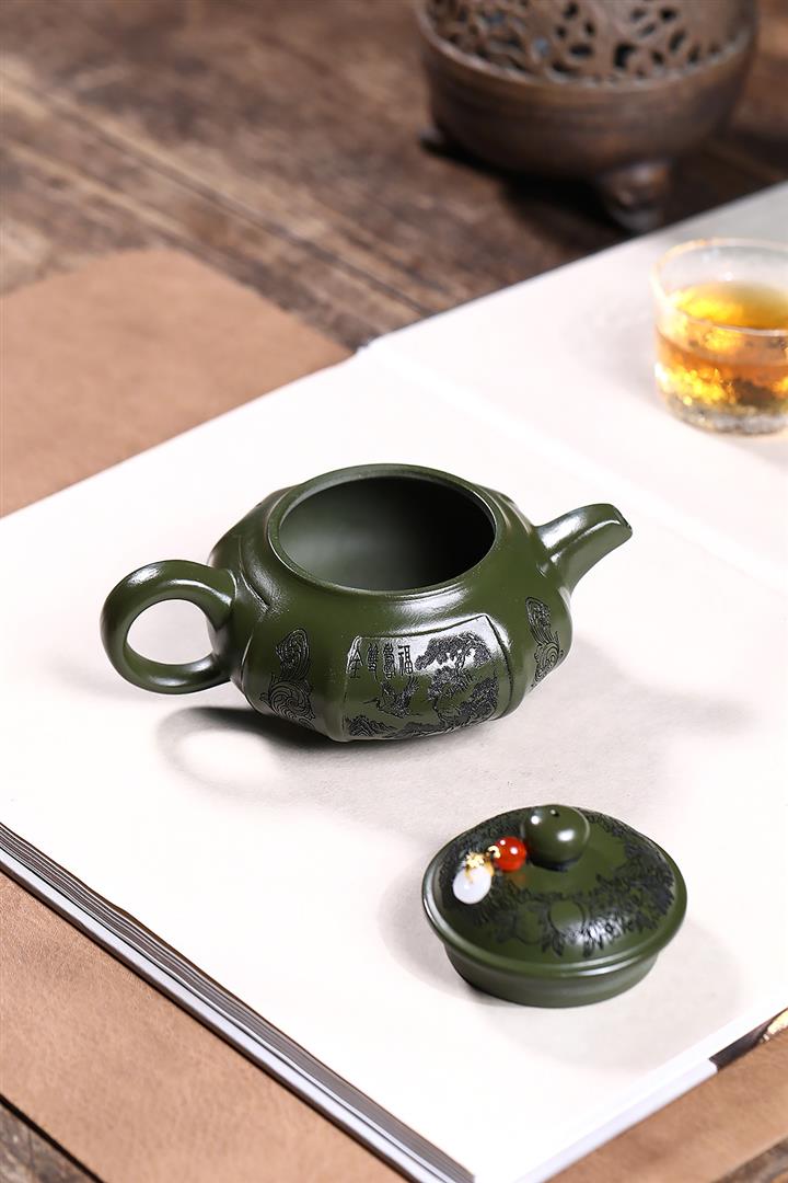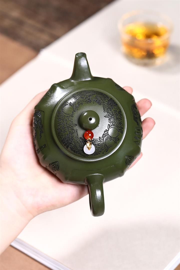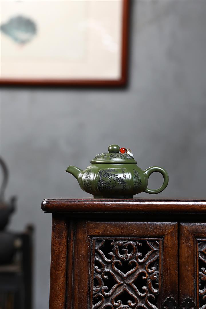 原礦綠泥浮雕魚躍龍門泡茶壺POT7901