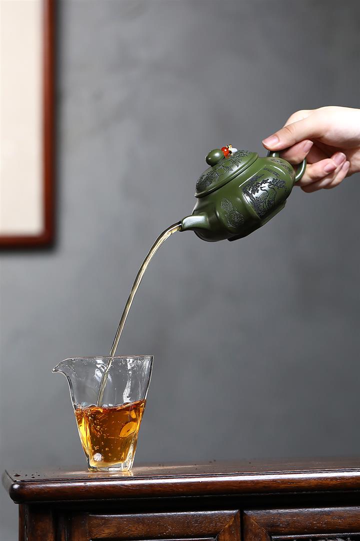 【作品介紹】此款壺形線條流暢,壺把,壺嘴,壺身壹氣呵成栩栩如生,是收藏把玩的好壺,泥料色澤古樸典雅,日久使用,漸露鋒芒,養成變化快,溫潤莊重,用其泡茶,使用的年代久,壺身就溫潤,泡出來的茶湯也就醇郁芳馨。