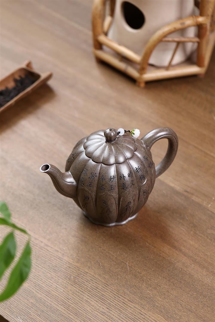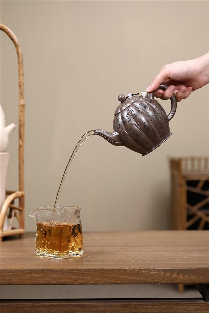 【泥料特點】砂土氣重,似淳實農民,日久使用,漸露鋒芒,養成變化,溫潤莊重。紫砂是壹種雙重氣孔結構的多孔性材質,氣孔微細,密度高。用紫砂壺沏茶,不失原味,且香不渙散,得茶之真香真味。紫砂使用越久,壺身色澤越發光亮照人,氣韻溫雅。紫砂壺長久使用器身會因撫摸擦拭,變得越發溫潤光澤。
