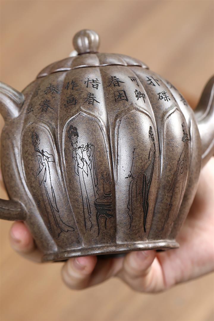 原礦紫泥山水樓閣井欄茶壺POT7916