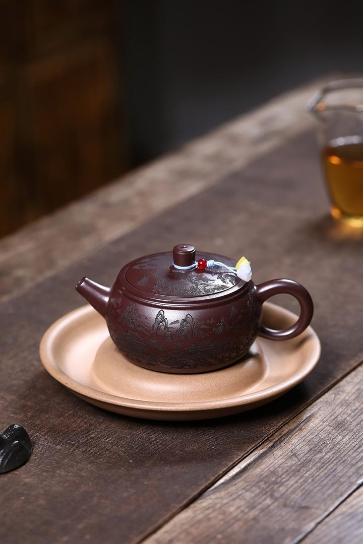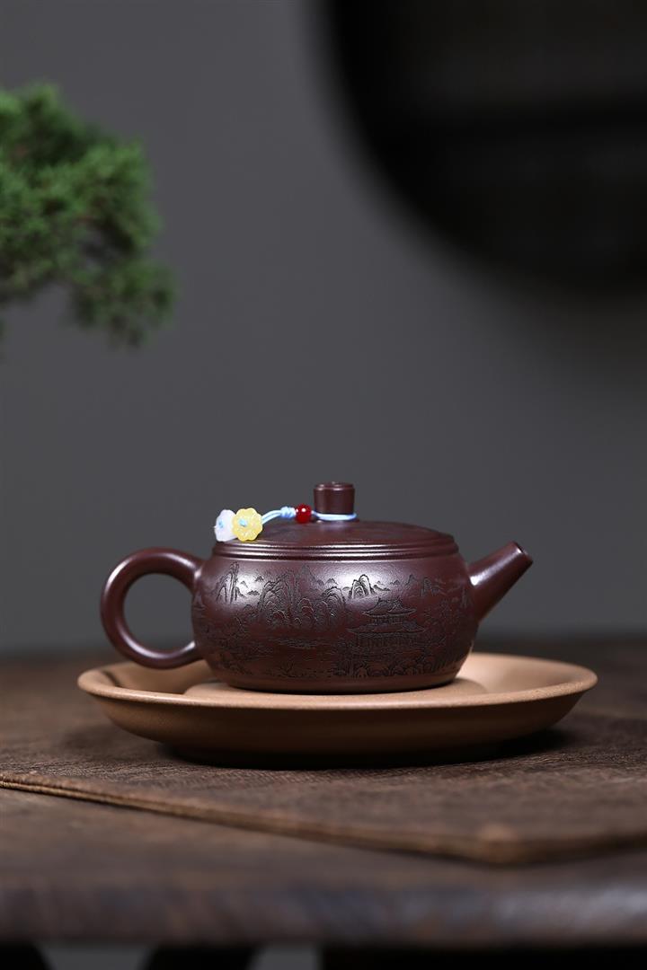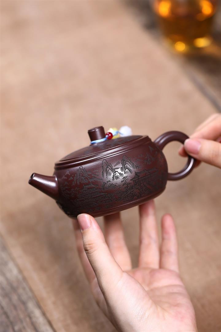 原礦紫泥山水樓閣井欄茶壺POT7916