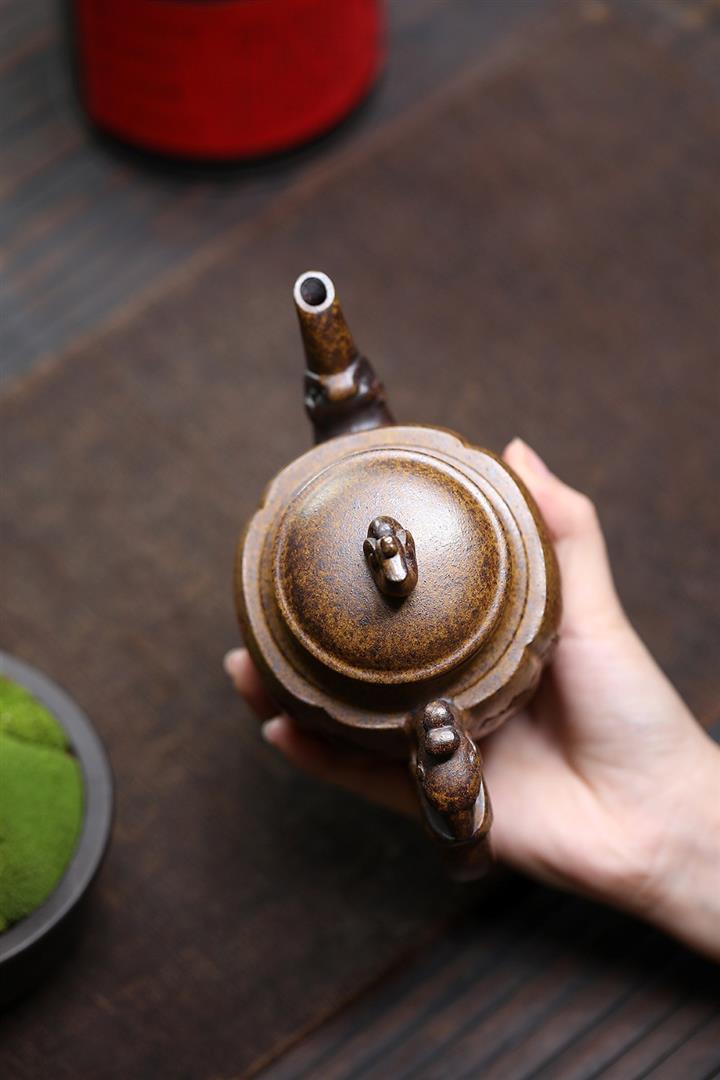 原礦大紅袍焐灰筋紋錦囊茶壺POT7785