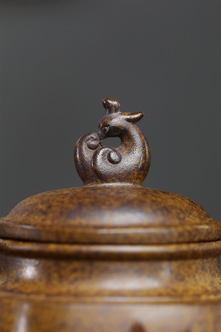 【作品介紹】作品深蘊內涵,做工細致典雅,型用完備,器形端莊穩重,比例協調,結構嚴謹,泥色潤澤。
