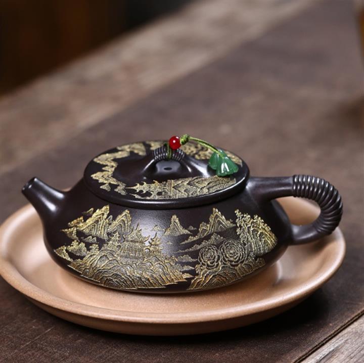 原礦綠泥文人山水漢瓦茶壺POT7498
