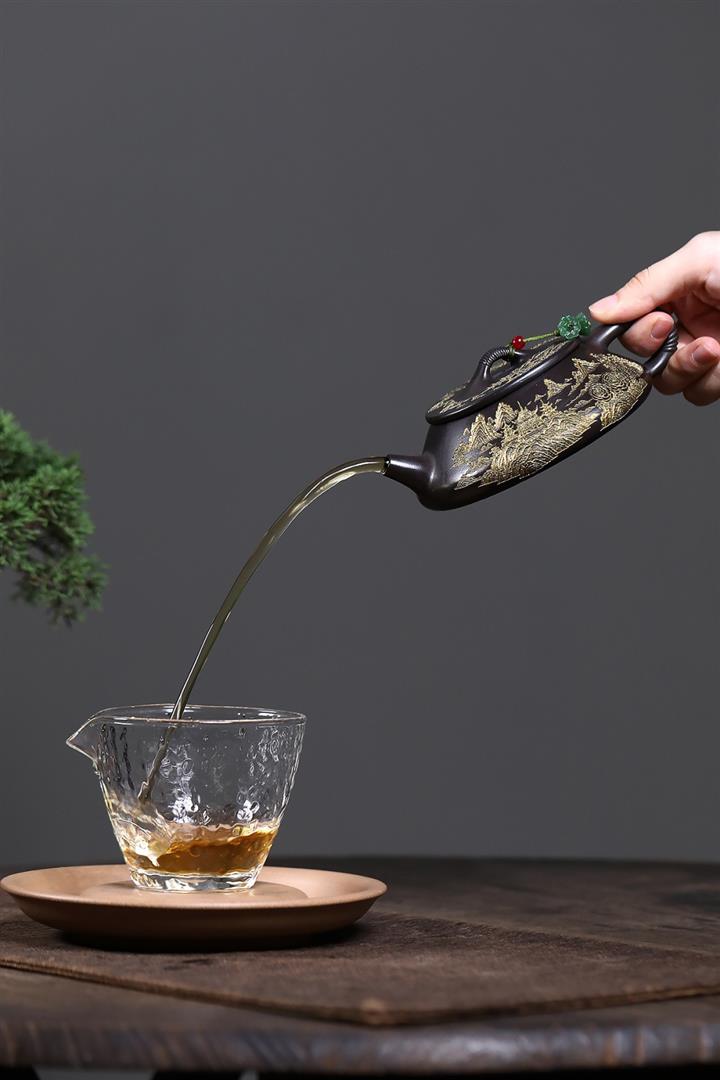 【泥料特點】砂土氣重,似淳實農民,日久使用,漸露鋒芒,養成變化,溫潤莊重。紫砂是壹種雙重氣孔結構的多孔性材質,氣孔微細,密度高。用紫砂壺沏茶,不失原味,且香不渙散,得茶之真香真味。紫砂使用越久,壺身色澤越發光亮照人,氣韻溫雅。紫砂壺長久使用器身會因撫摸擦拭,變得越發溫潤光澤。