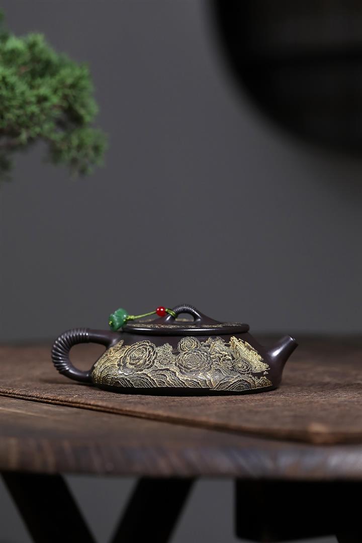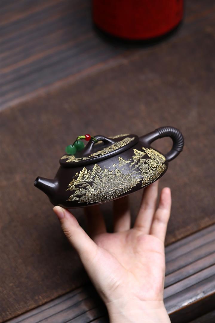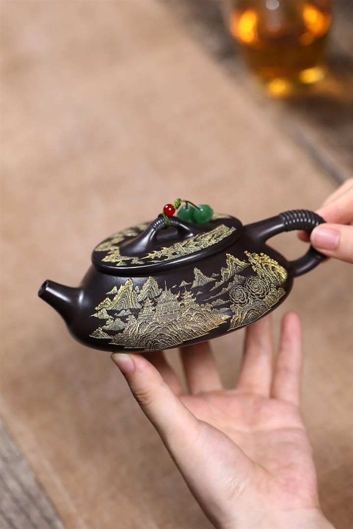 【作品介紹】此款壺形線條流暢,壺把,壺嘴,壺身壹氣呵成栩栩如生,是收藏把玩的好壺,泥料色澤古樸典雅,日久使用,漸露鋒芒,養成變化快,溫潤莊重,用其泡茶,使用的年代久,壺身就溫潤,泡出來的茶湯也就醇郁芳馨。
