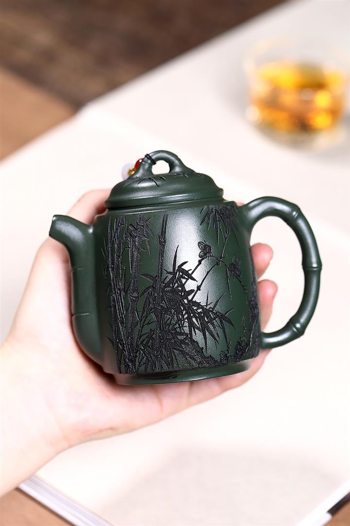 250cc原礦綠泥清風竹韻泡茶壺POT7922
