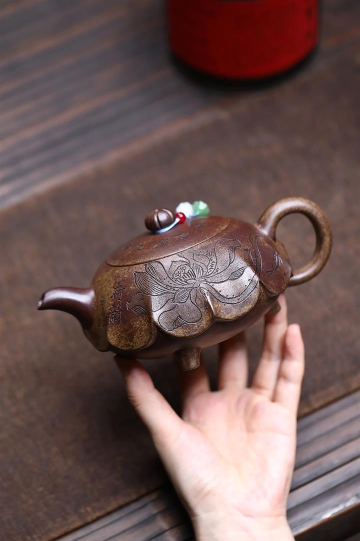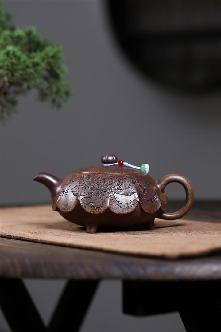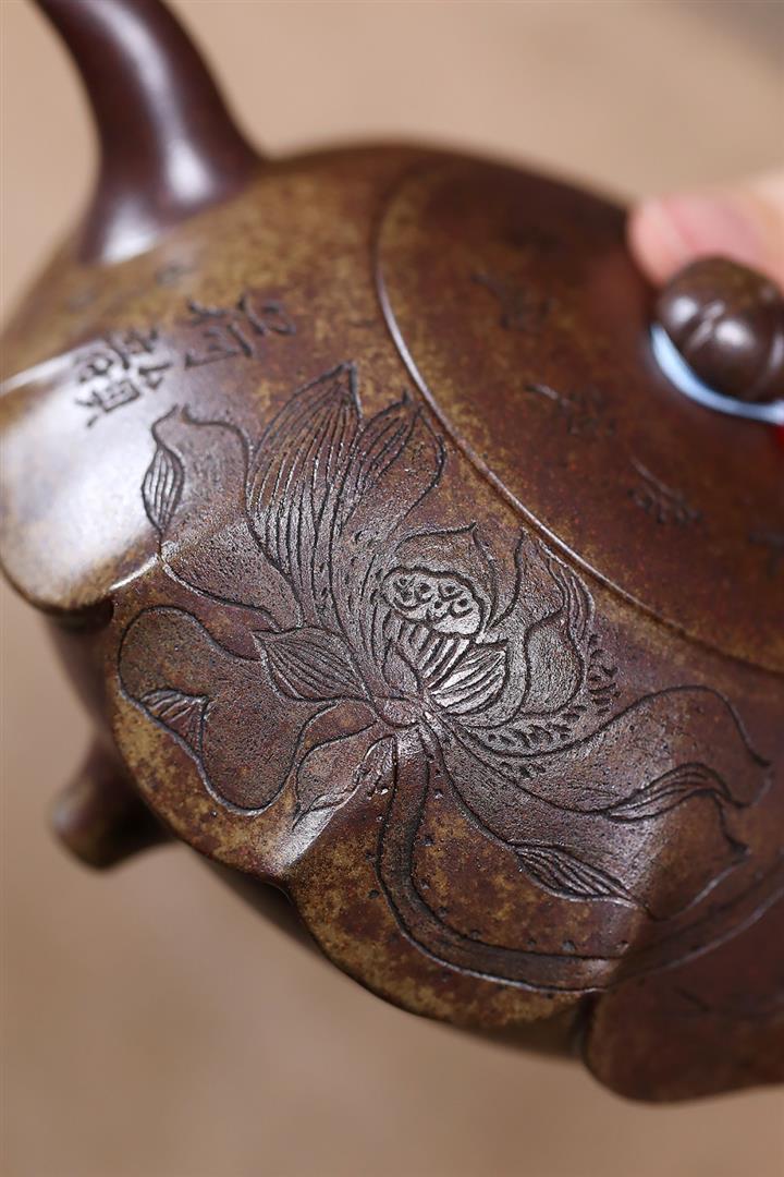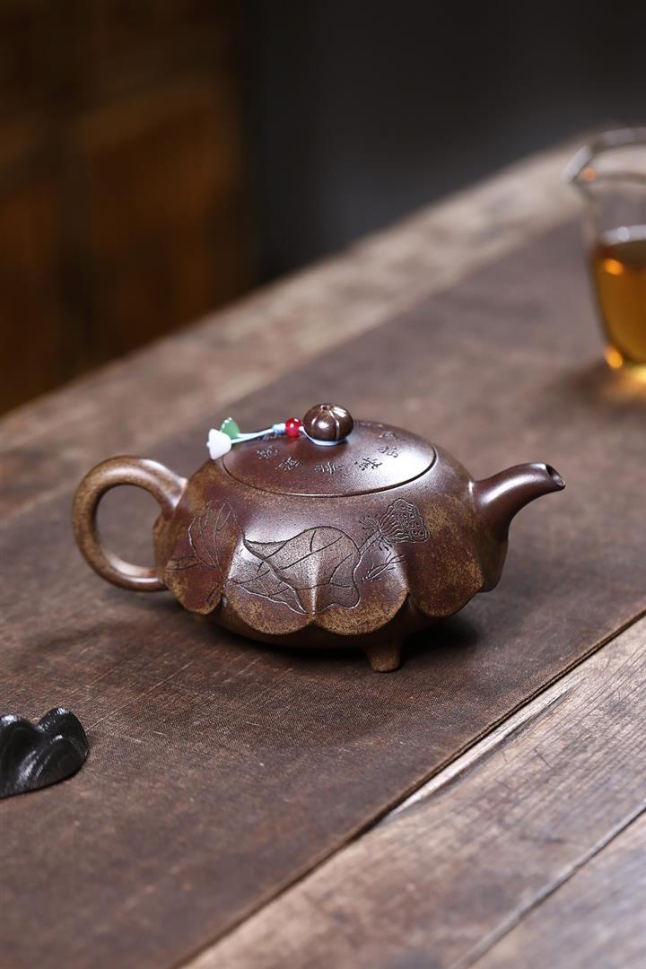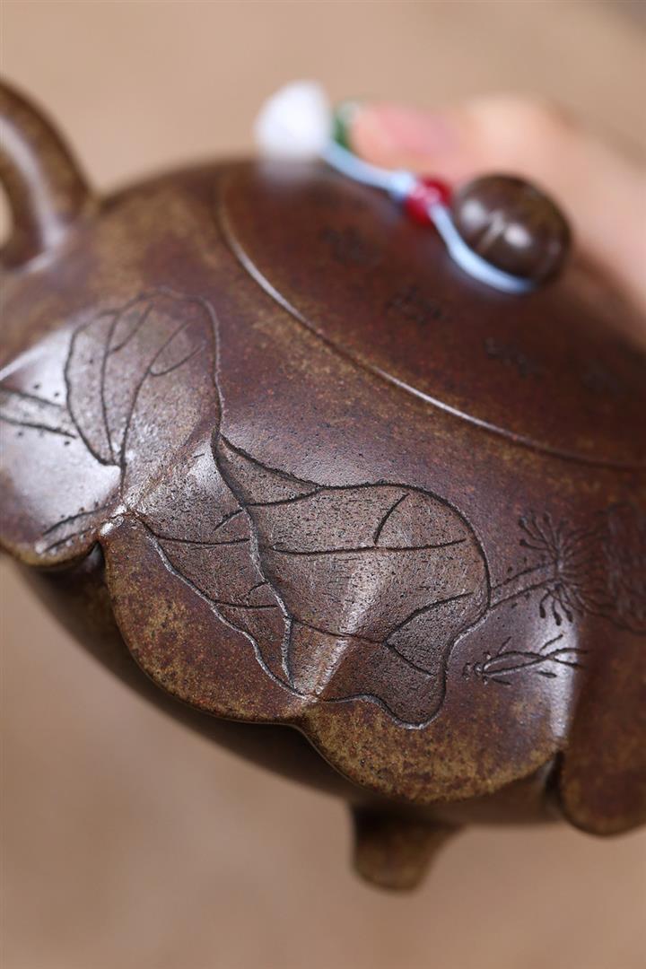 360cc原礦沈香泥柴燒高風亮節荷葉茶壺POT7927