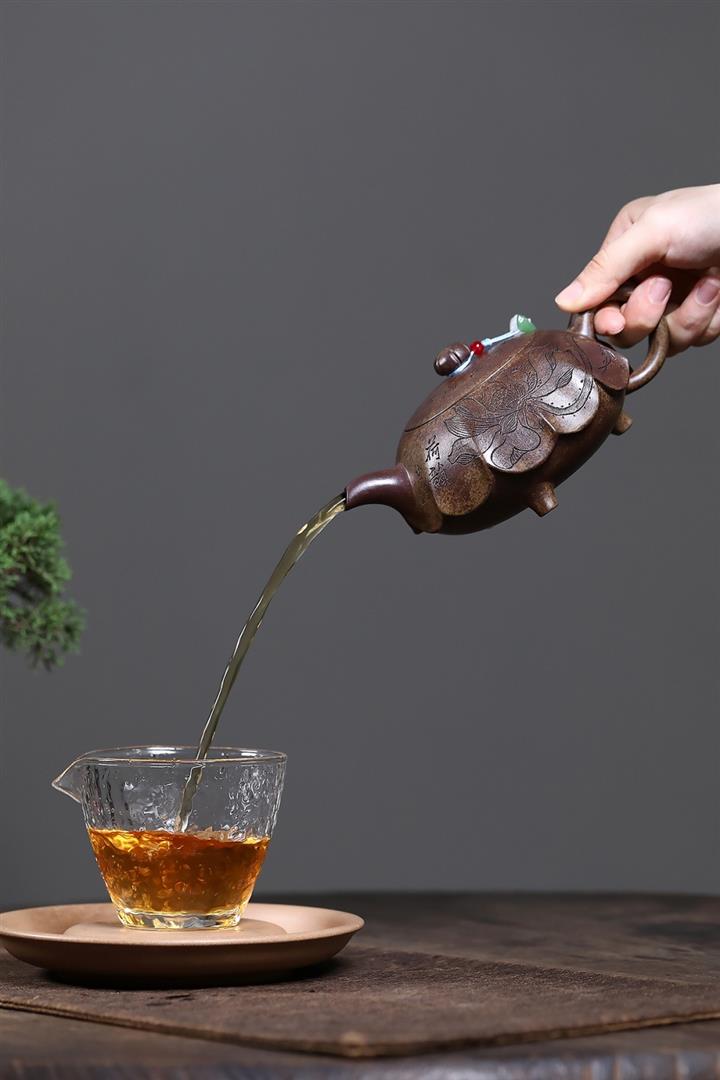 【泥料特點】砂土氣重,似淳實農民,日久使用,漸露鋒芒,養成變化,溫潤莊重。紫砂是壹種雙重氣孔結構的多孔性材質,氣孔微細,密度高。用紫砂壺沏茶,不失原味,且香不渙散,得茶之真香真味。紫砂使用越久,壺身色澤越發光亮照人,氣韻溫雅。紫砂壺長久使用器身會因撫摸擦拭,變得越發溫潤光澤。