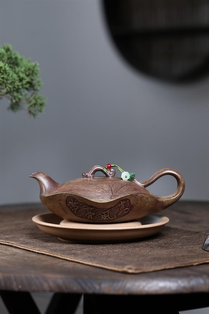 360cc原礦沈香泥柴燒高風亮節荷葉茶壺POT7927