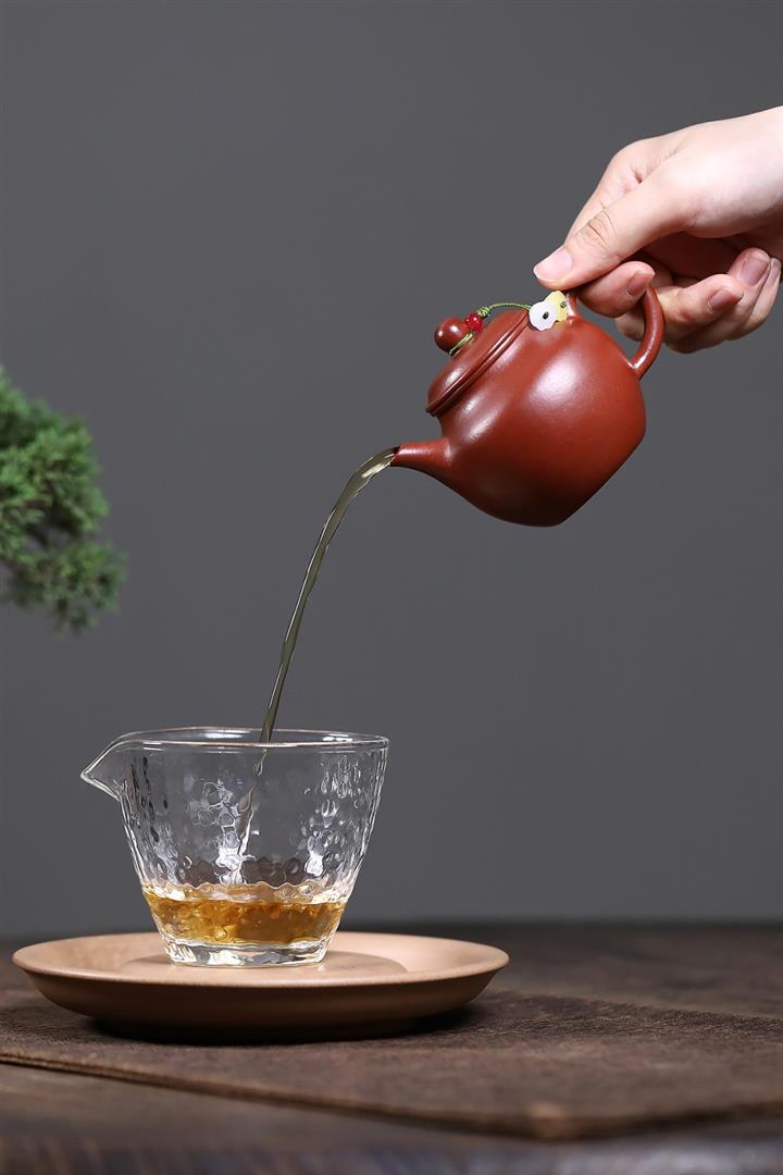 【泥料特點】砂土氣重,似淳實農民,日久使用,漸露鋒芒,養成變化,溫潤莊重。紫砂是壹種雙重氣孔結構的多孔性材質,氣孔微細,密度高。用紫砂壺沏茶,不失原味,且香不渙散,得茶之真香真味。紫砂使用越久,壺身色澤越發光亮照人,氣韻溫雅。紫砂壺長久使用器身會因撫摸擦拭,變得越發溫潤光澤。