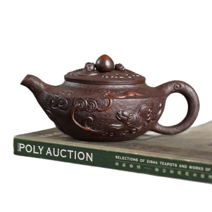 250cc原礦老紫泥浮雕祥龍戲珠茶壺POT7937
