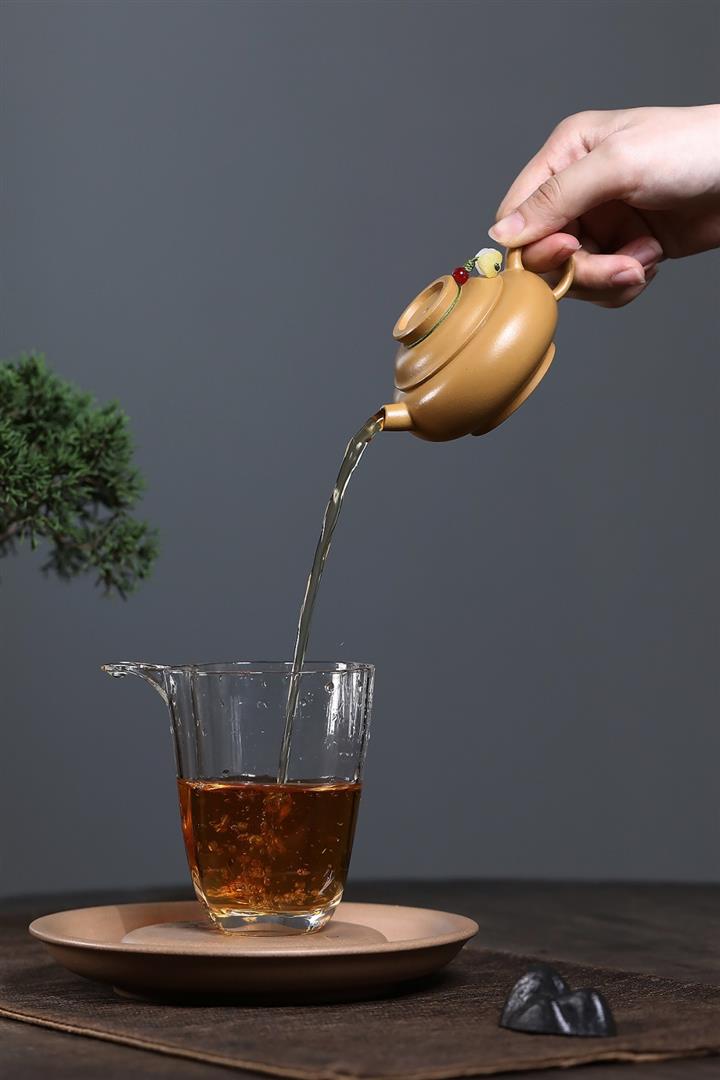 【泥料特點】砂土氣重,似淳實農民,日久使用,漸露鋒芒,養成變化,溫潤莊重。紫砂是壹種雙重氣孔結構的多孔性材質,氣孔微細,密度高。用紫砂壺沏茶,不失原味,且香不渙散,得茶之真香真味。紫砂使用越久,壺身色澤越發光亮照人,氣韻溫雅。紫砂壺長久使用器身會因撫摸擦拭,變得越發溫潤光澤。