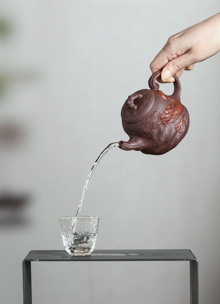 【泥料特點】砂土氣重,似淳實農民,日久使用,漸露鋒芒,養成變化,溫潤莊重。紫砂是壹種雙重氣孔結構的多孔性材質,氣孔微細,密度高。用紫砂壺沏茶,不失原味,且香不渙散,得茶之真香真味。紫砂使用越久,壺身色澤越發光亮照人,氣韻溫雅。紫砂壺長久使用器身會因撫摸擦拭,變得越發溫潤光澤。