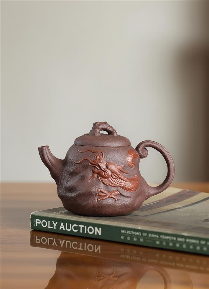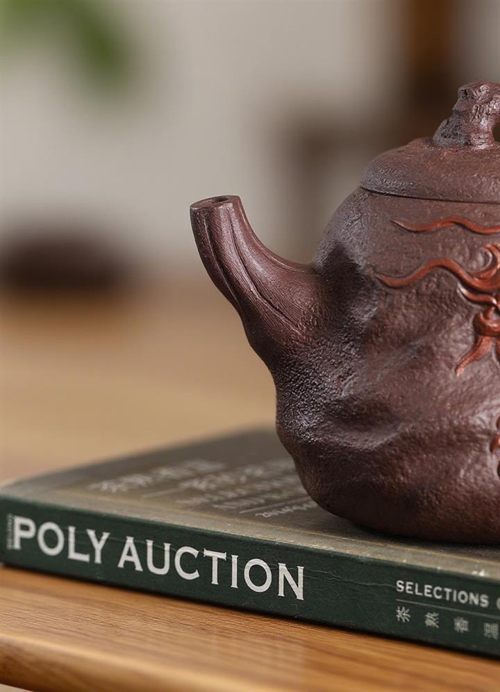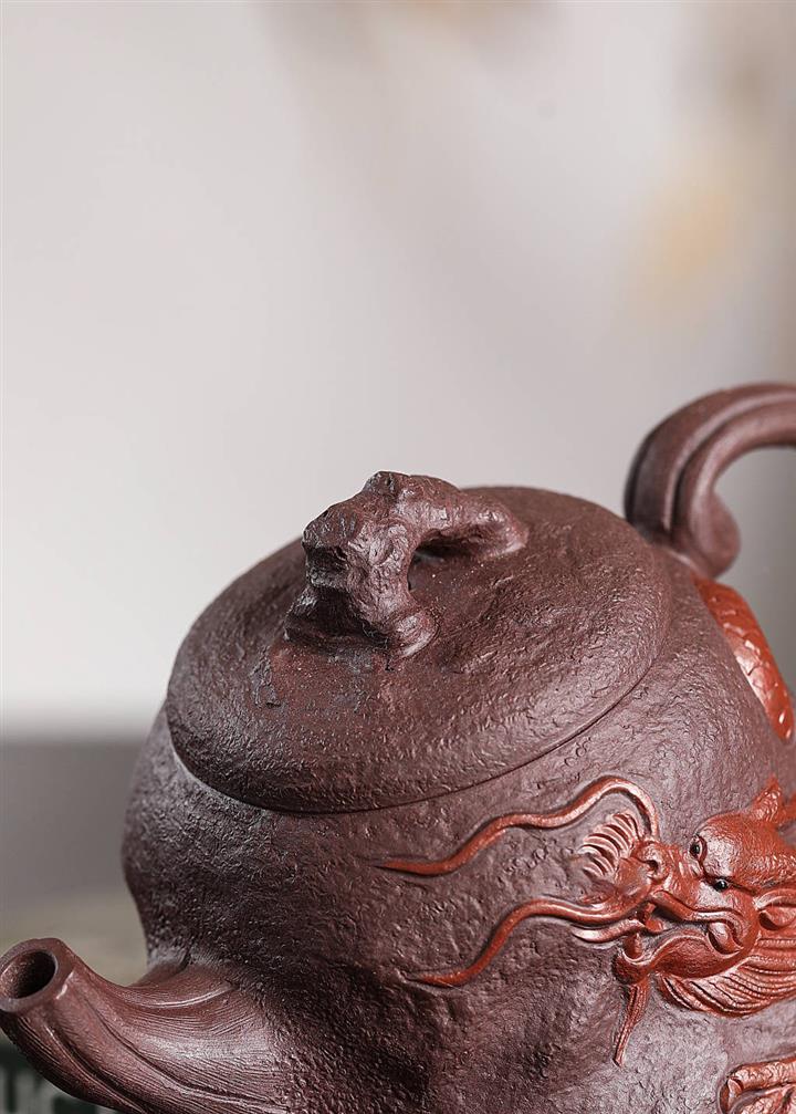 250cc原礦老紫泥浮雕祥龍戲珠茶壺POT7937