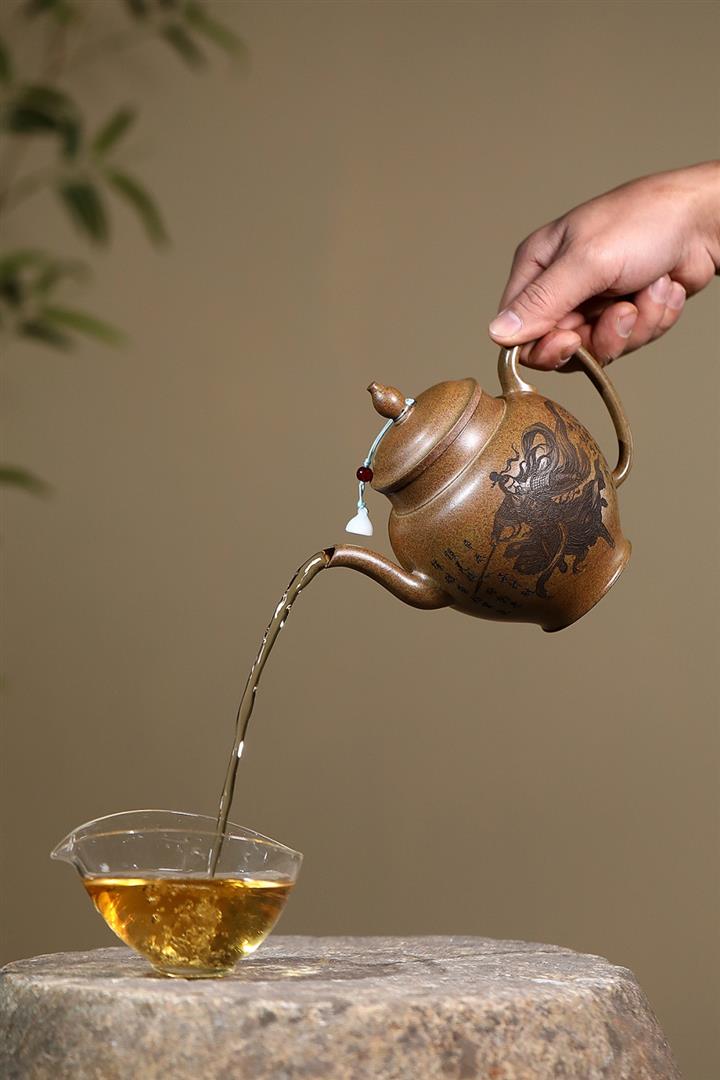【作品介紹】此款壺形線條流暢,壺把,壺嘴,壺身壹氣呵成栩栩如生,是收藏把玩的好壺,泥料色澤古樸典雅,日久使用,漸露鋒芒,養成變化快,溫潤莊重,用其泡茶,使用的年代久,壺身就溫潤,泡出來的茶湯也就醇郁芳馨。