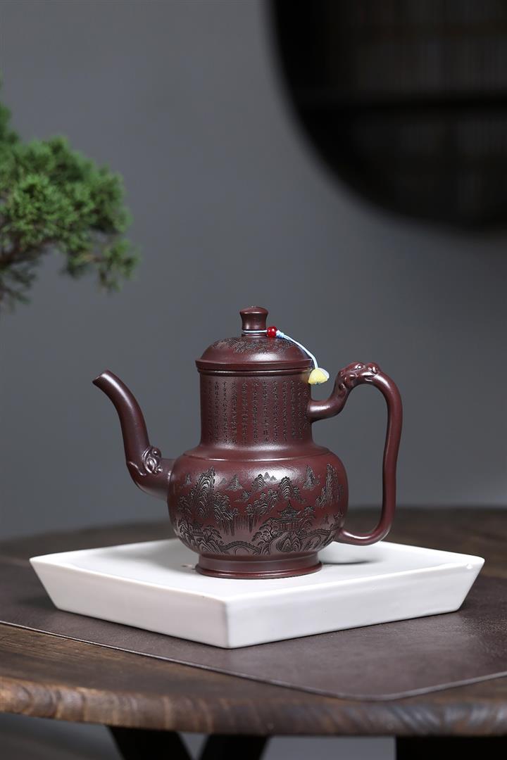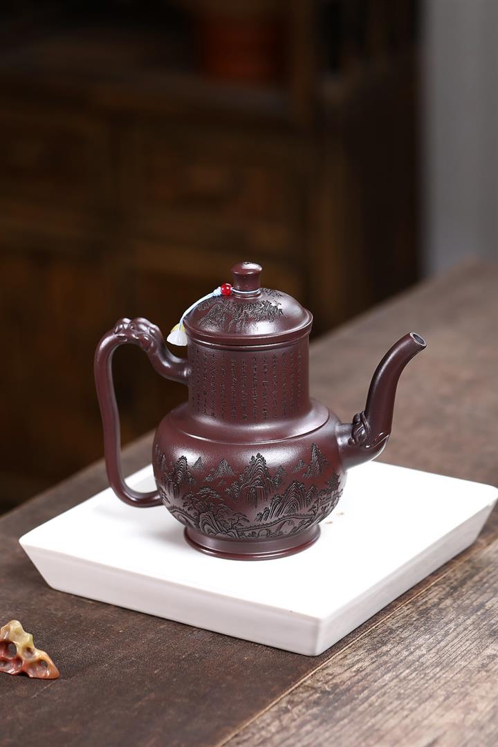 【作品介紹】此款壺形線條流暢,壺把,壺嘴,壺身壹氣呵成栩栩如生,是收藏把玩的好壺,泥料色澤古樸典雅,日久使用,漸露鋒芒,養成變化快,溫潤莊重,用其泡茶,使用的年代久,壺身就溫潤,泡出來的茶湯也就醇郁芳馨。