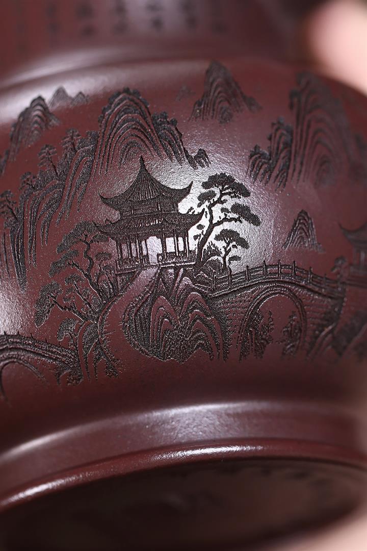 【泥料特點】砂土氣重,似淳實農民,日久使用,漸露鋒芒,養成變化,溫潤莊重。紫砂是壹種雙重氣孔結構的多孔性材質,氣孔微細,密度高。用紫砂壺沏茶,不失原味,且香不渙散,得茶之真香真味。紫砂使用越久,壺身色澤越發光亮照人,氣韻溫雅。紫砂壺長久使用器身會因撫摸擦拭,變得越發溫潤光澤。