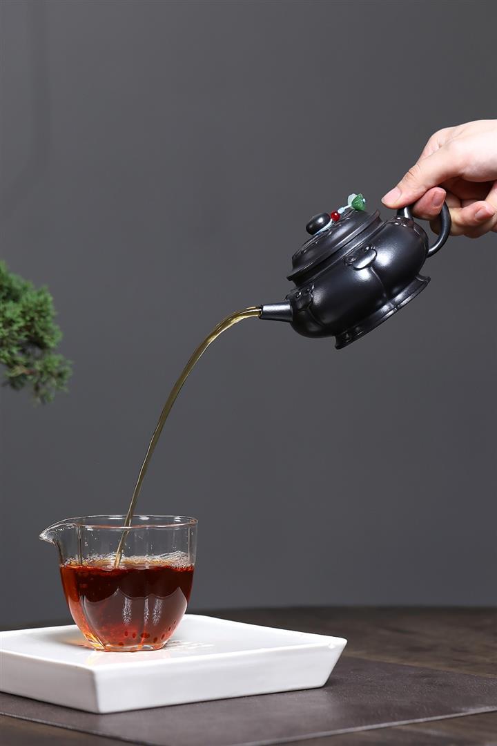 【泥料特點】砂土氣重,似淳實農民,日久使用,漸露鋒芒,養成變化,溫潤莊重。紫砂是壹種雙重氣孔結構的多孔性材質,氣孔微細,密度高。用紫砂壺沏茶,不失原味,且香不渙散,得茶之真香真味。紫砂使用越久,壺身色澤越發光亮照人,氣韻溫雅。紫砂壺長久使用器身會因撫摸擦拭,變得越發溫潤光澤。
