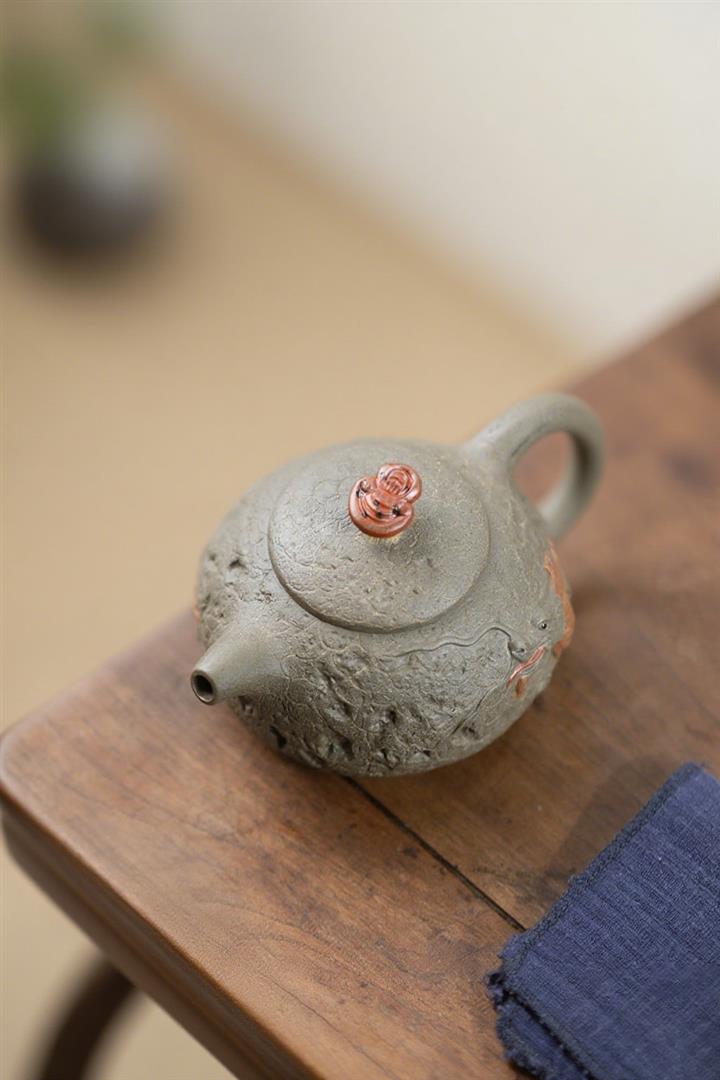 200cc原礦柴燒段泥招財進寶茶壺POT7956