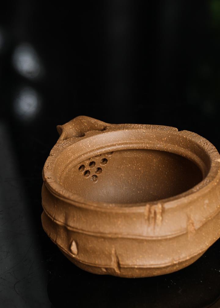 【泥料特點】砂土氣重,似淳實農民,日久使用,漸露鋒芒,養成變化,溫潤莊重。紫砂是壹種雙重氣孔結構的多孔性材質,氣孔微細,密度高。用紫砂壺沏茶,不失原味,且香不渙散,得茶之真香真味。紫砂使用越久,壺身色澤越發光亮照人,氣韻溫雅。紫砂壺長久使用器身會因撫摸擦拭,變得越發溫潤光澤。