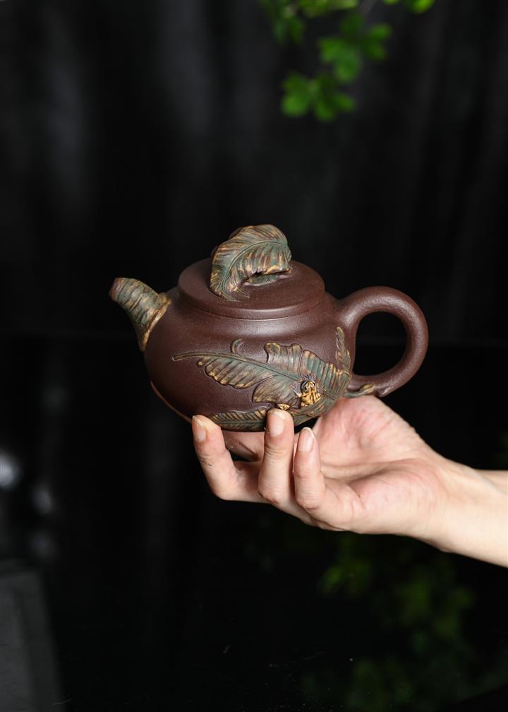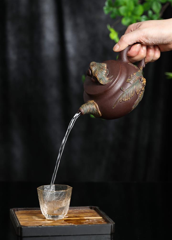 【泥料特點】砂土氣重,似淳實農民,日久使用,漸露鋒芒,養成變化,溫潤莊重。紫砂是壹種雙重氣孔結構的多孔性材質,氣孔微細,密度高。用紫砂壺沏茶,不失原味,且香不渙散,得茶之真香真味。紫砂使用越久,壺身色澤越發光亮照人,氣韻溫雅。紫砂壺長久使用器身會因撫摸擦拭,變得越發溫潤光澤。