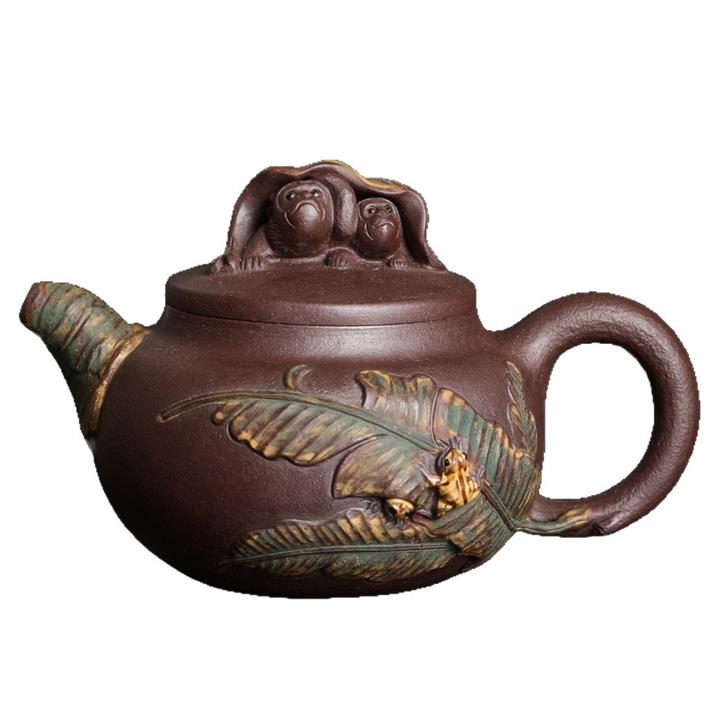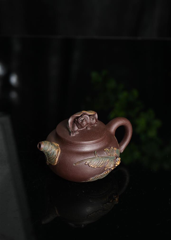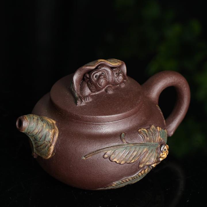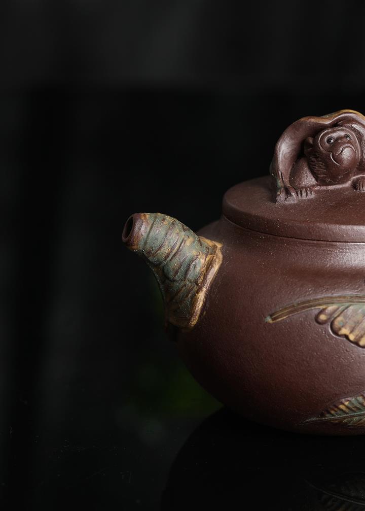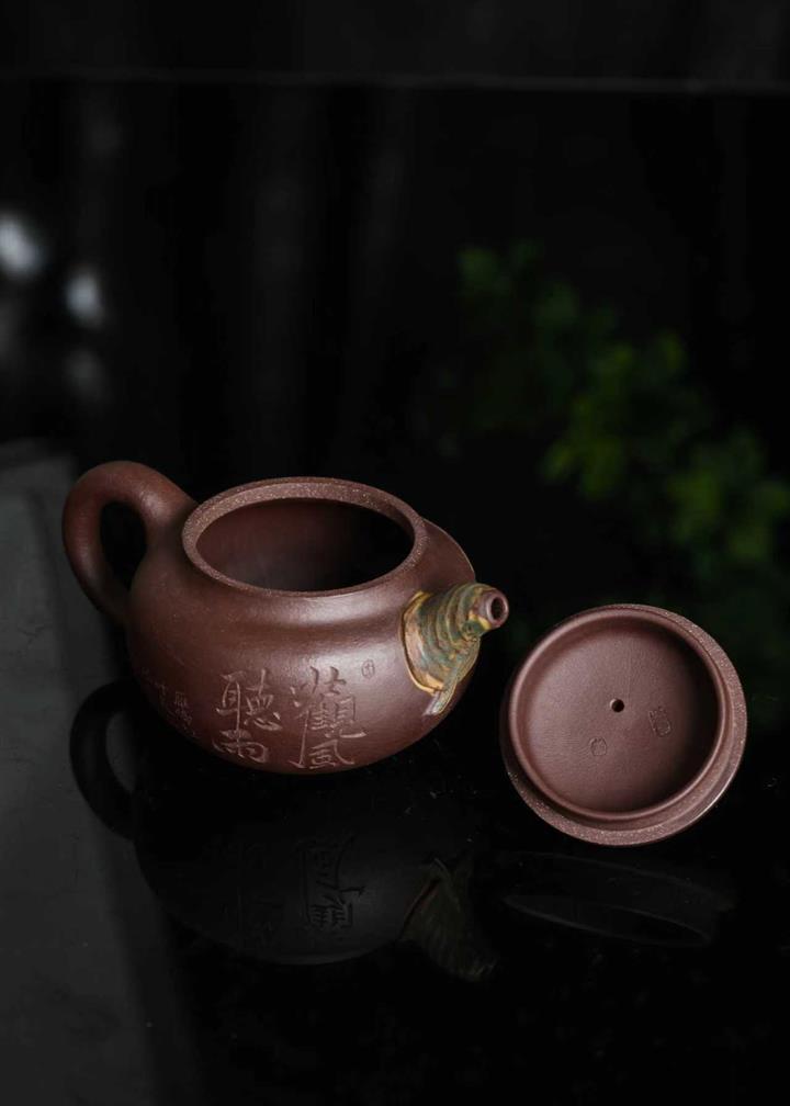 630cc原礦古銅泥滿刻百鳥朝鳳茶壺POT7969