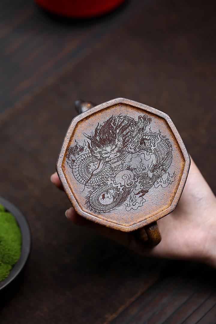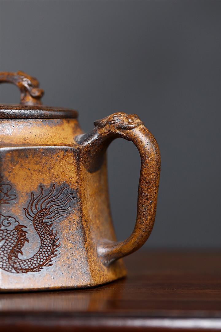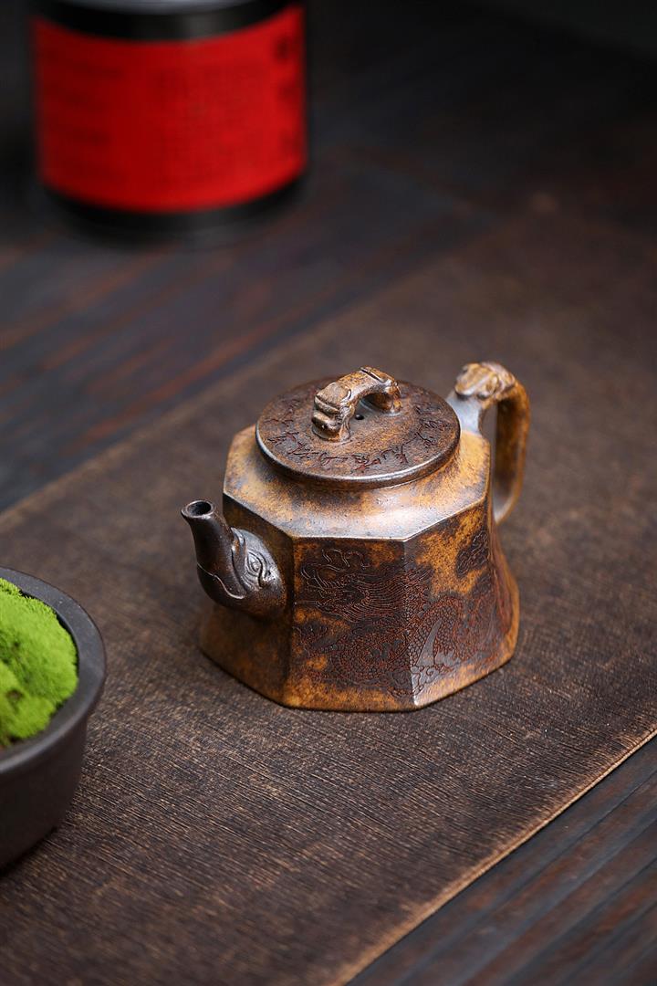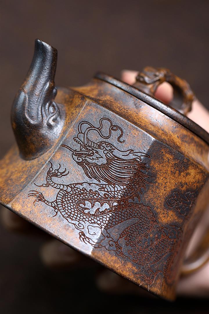630cc原礦古銅泥滿刻百鳥朝鳳茶壺POT7969