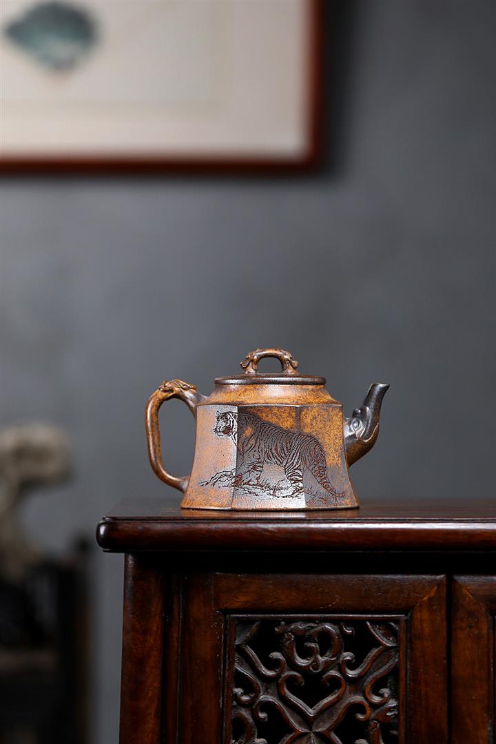 240cc原礦石黃泥猛虎出山雲爐壺POT7974