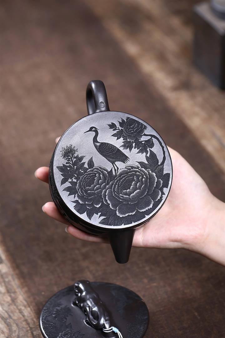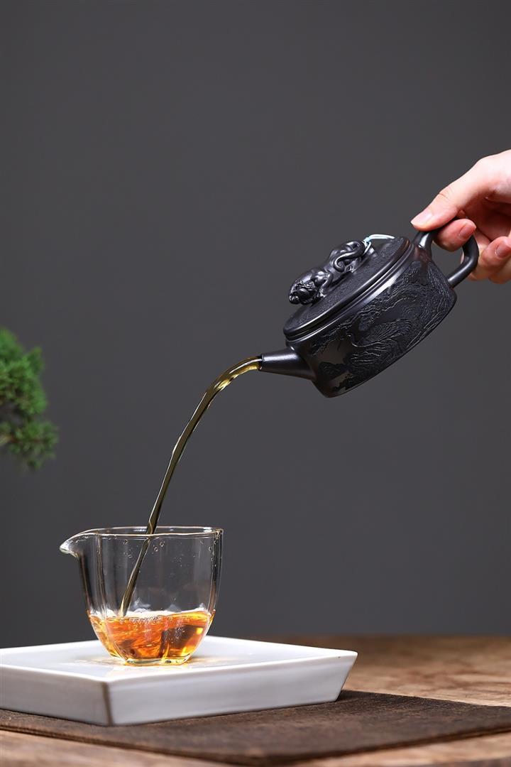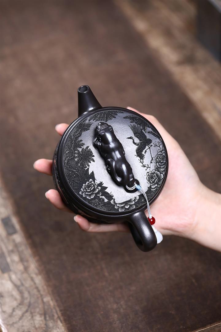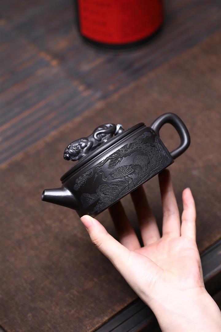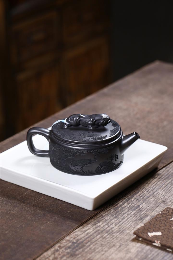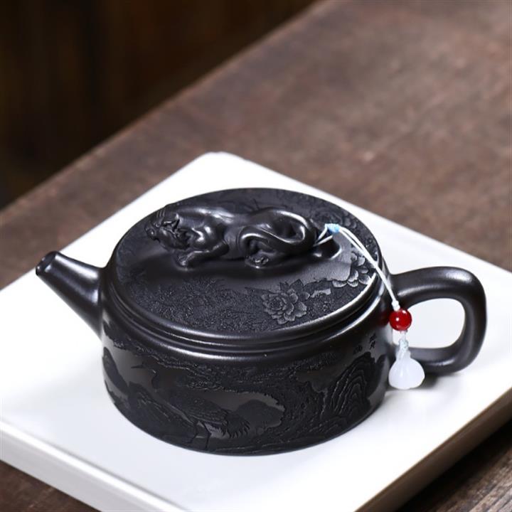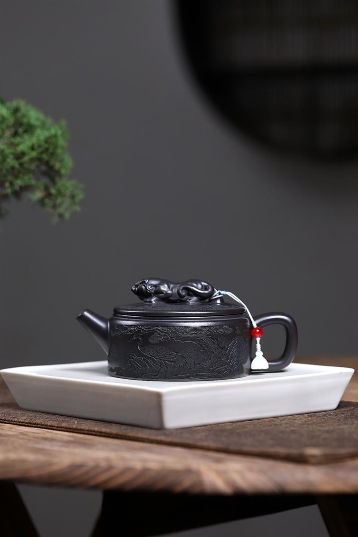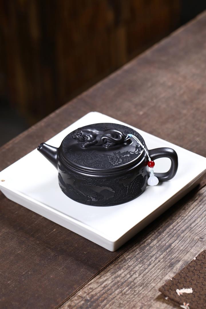 480cc原礦石黃泥滿刻萬馬奔騰茶壺POT7973