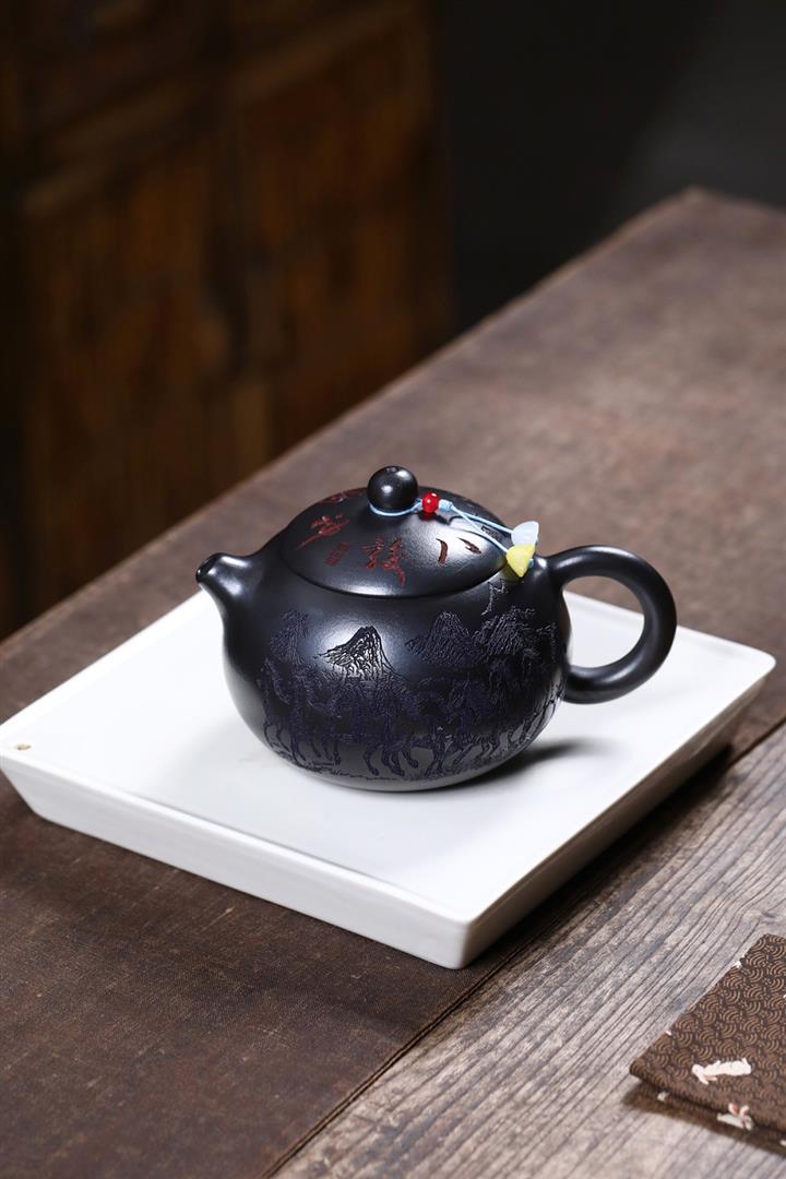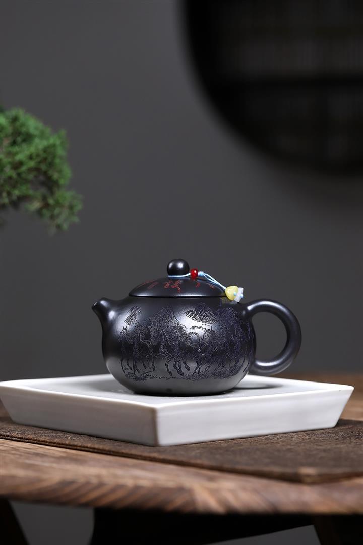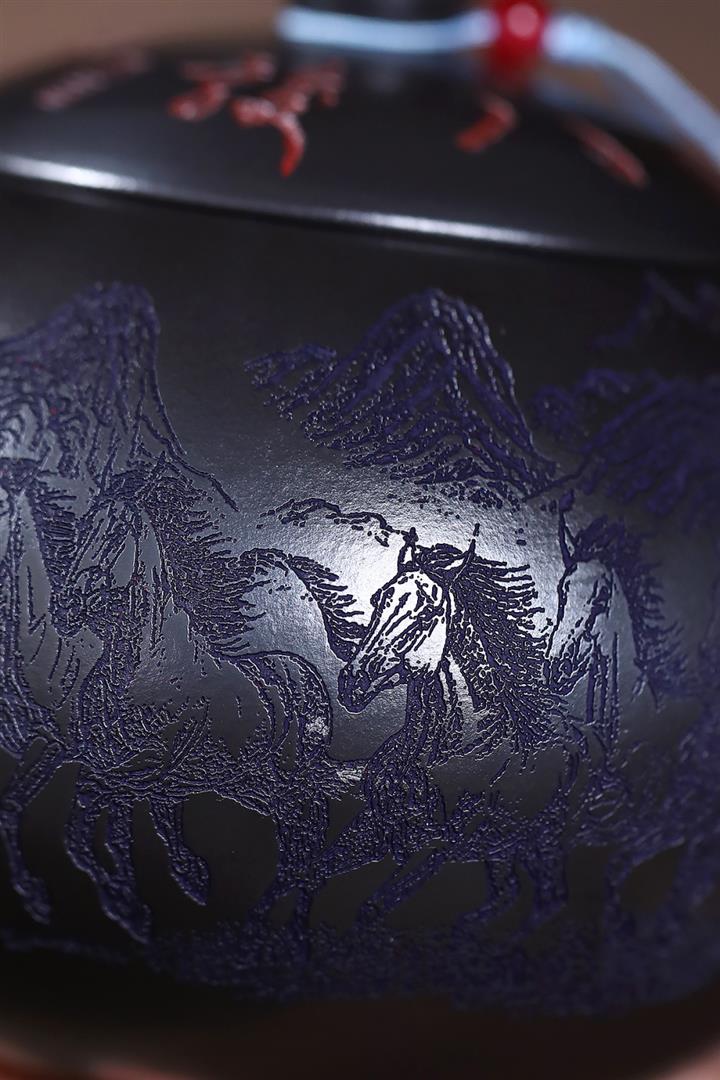480cc原礦石黃泥滿刻萬馬奔騰茶壺POT7973
