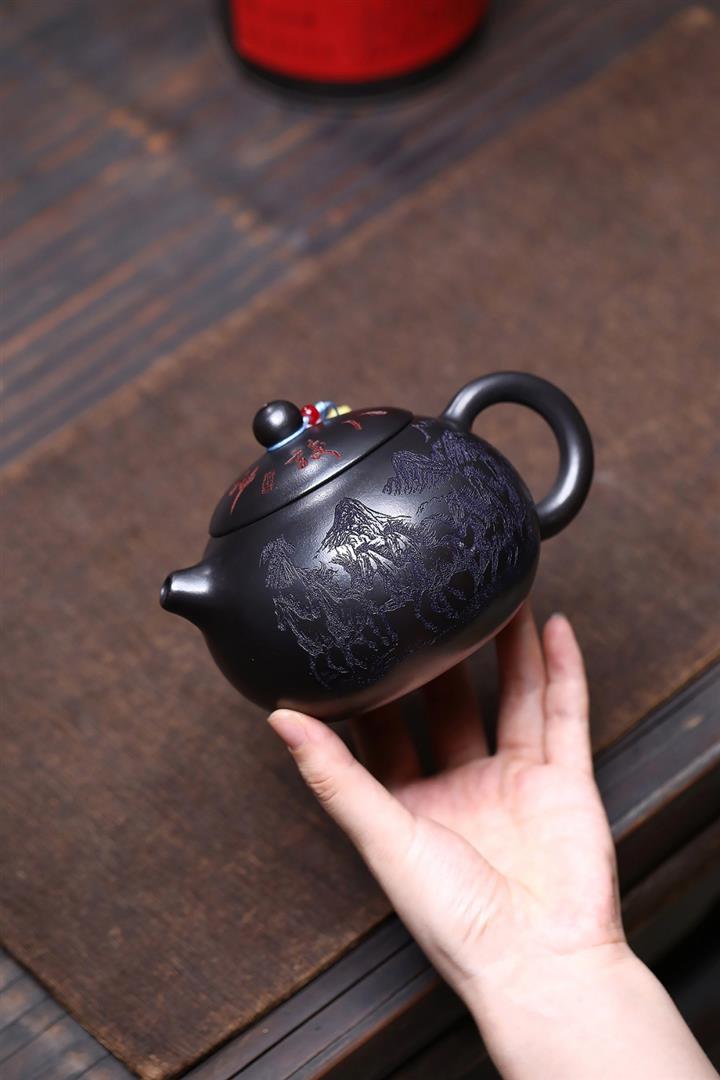 400cc原礦綠泥滿刻江山如畫壺POT7982