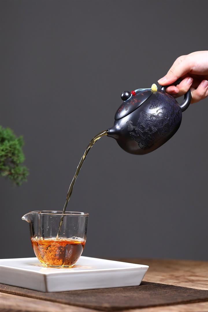 【泥料特點】砂土氣重,似淳實農民,日久使用,漸露鋒芒,養成變化,溫潤莊重。紫砂是壹種雙重氣孔結構的多孔性材質,氣孔微細,密度高。用紫砂壺沏茶,不失原味,且香不渙散,得茶之真香真味。紫砂使用越久,壺身色澤越發光亮照人,氣韻溫雅。紫砂壺長久使用器身會因撫摸擦拭,變得越發溫潤光澤。