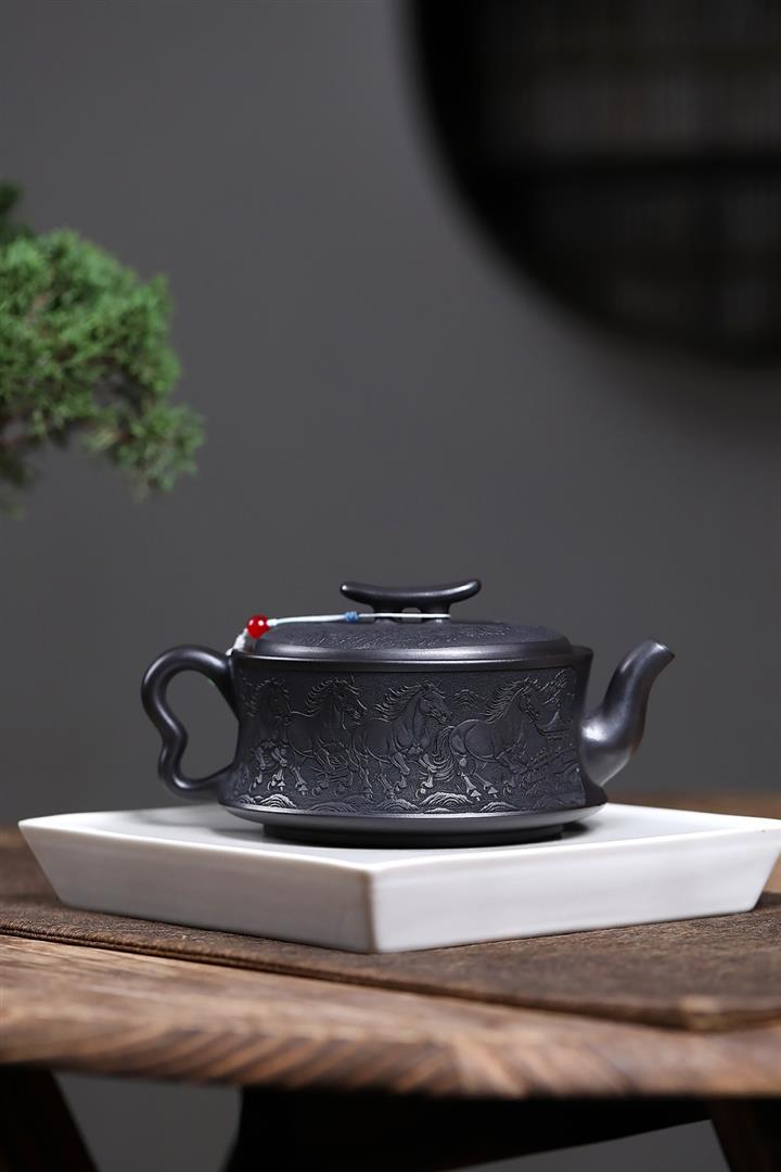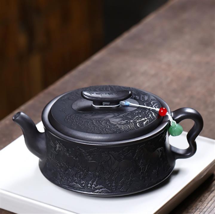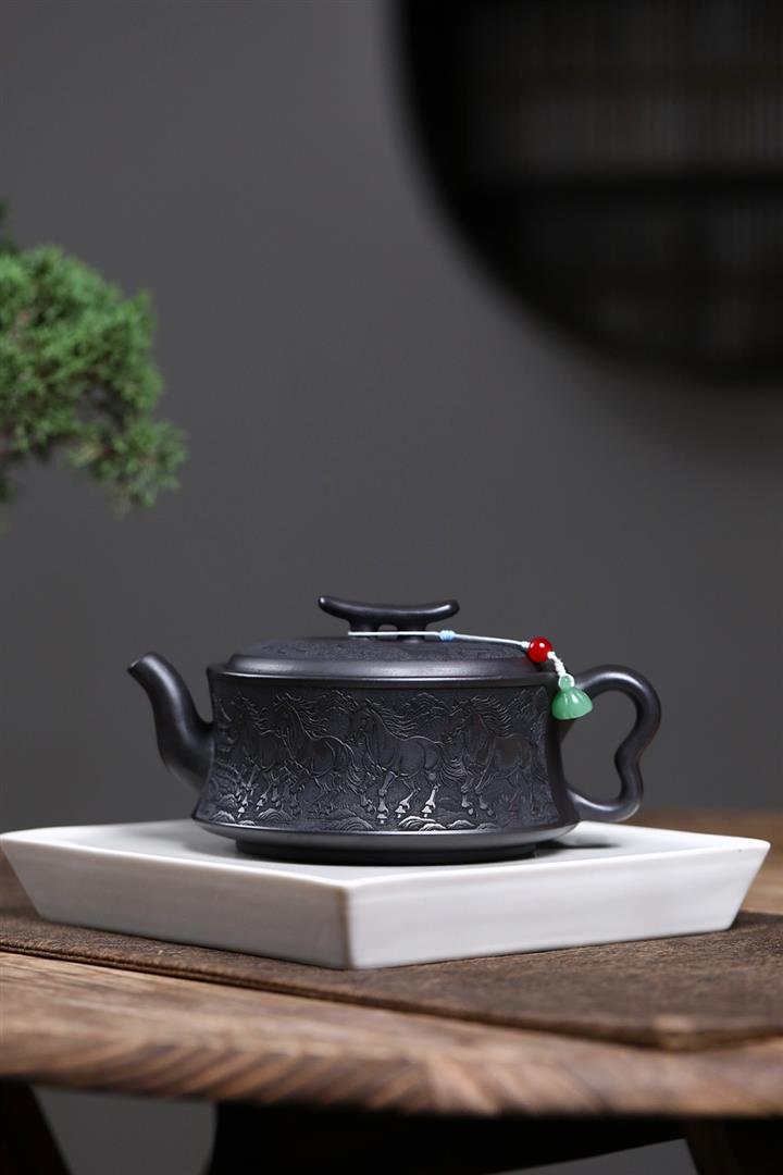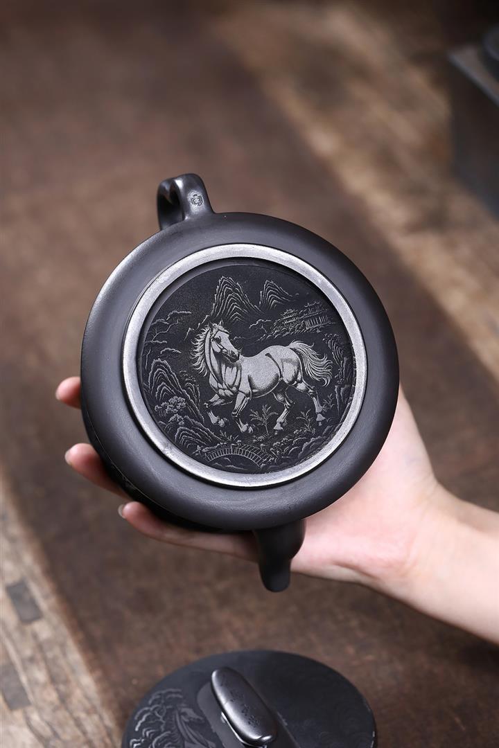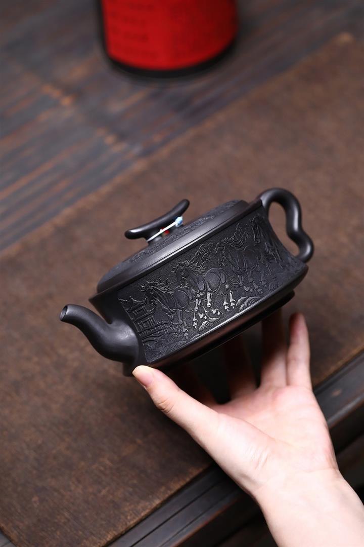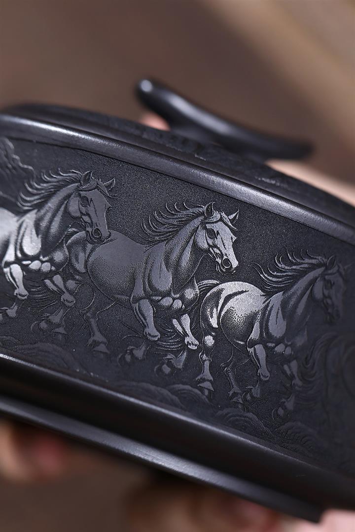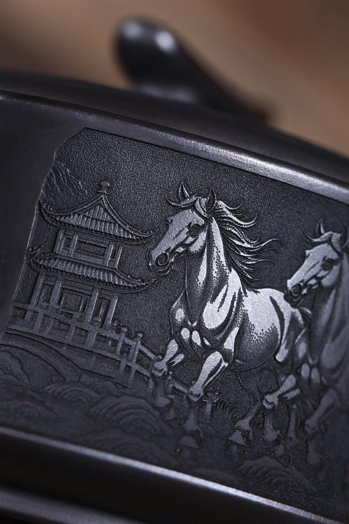 480cc原礦石黃泥滿刻萬馬奔騰茶壺POT7973