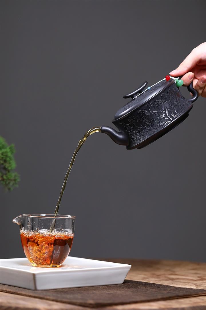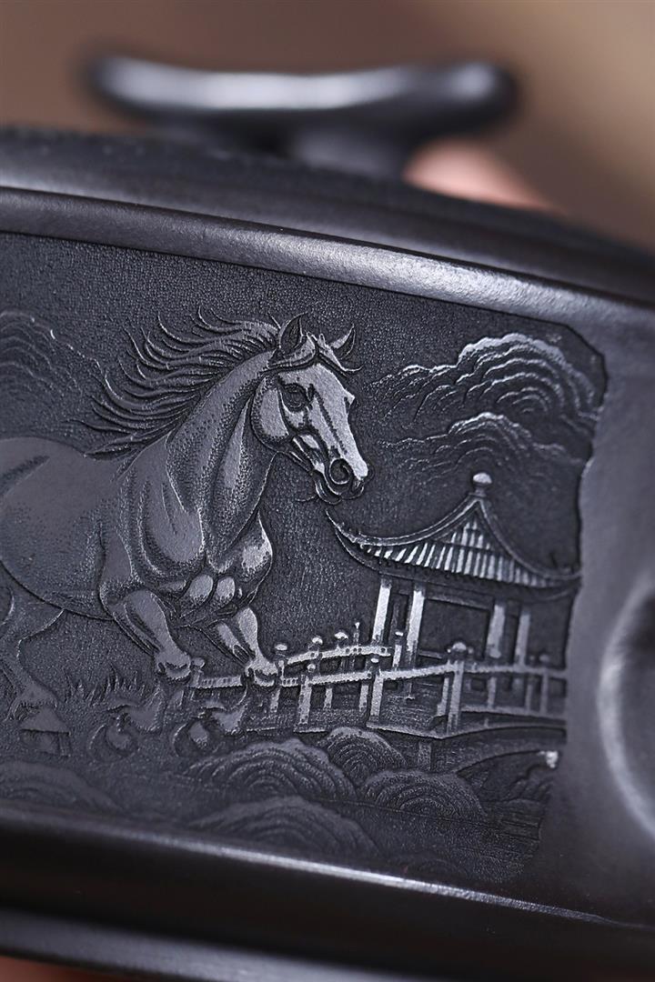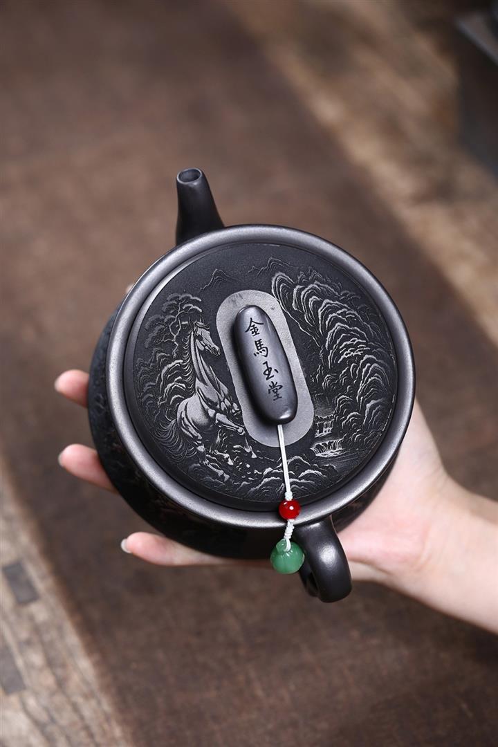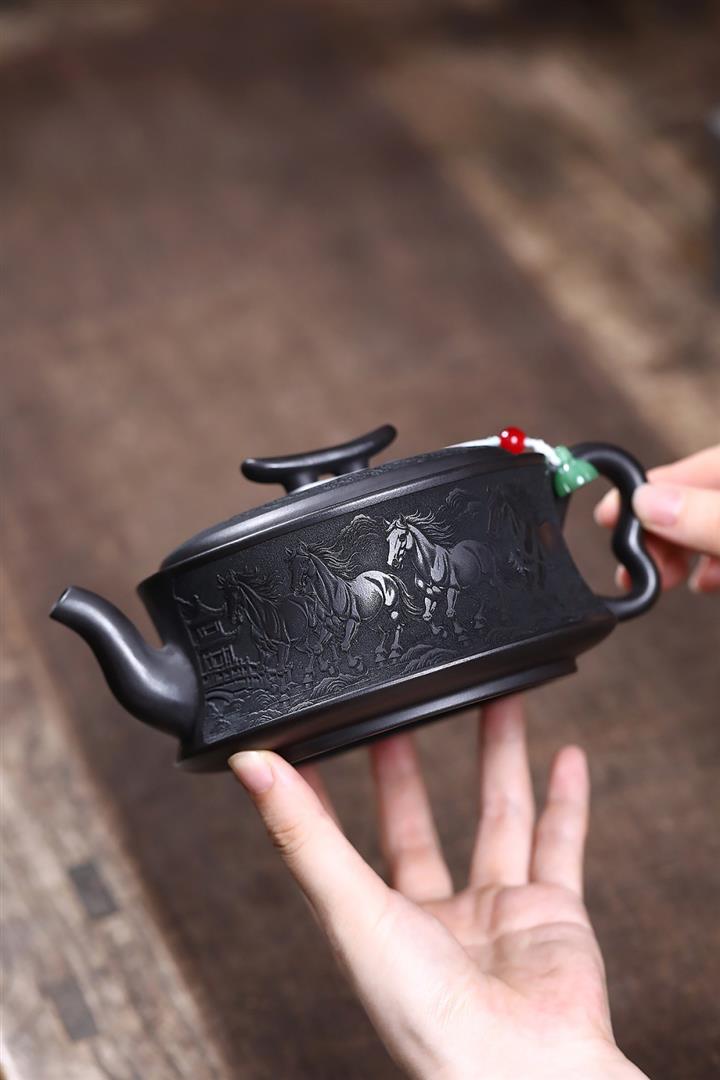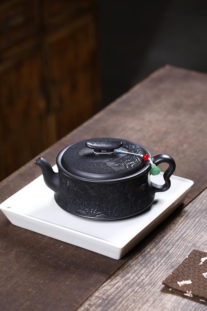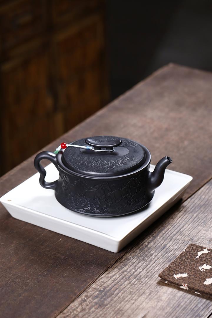 480cc原礦石黃泥滿刻萬馬奔騰茶壺POT7973