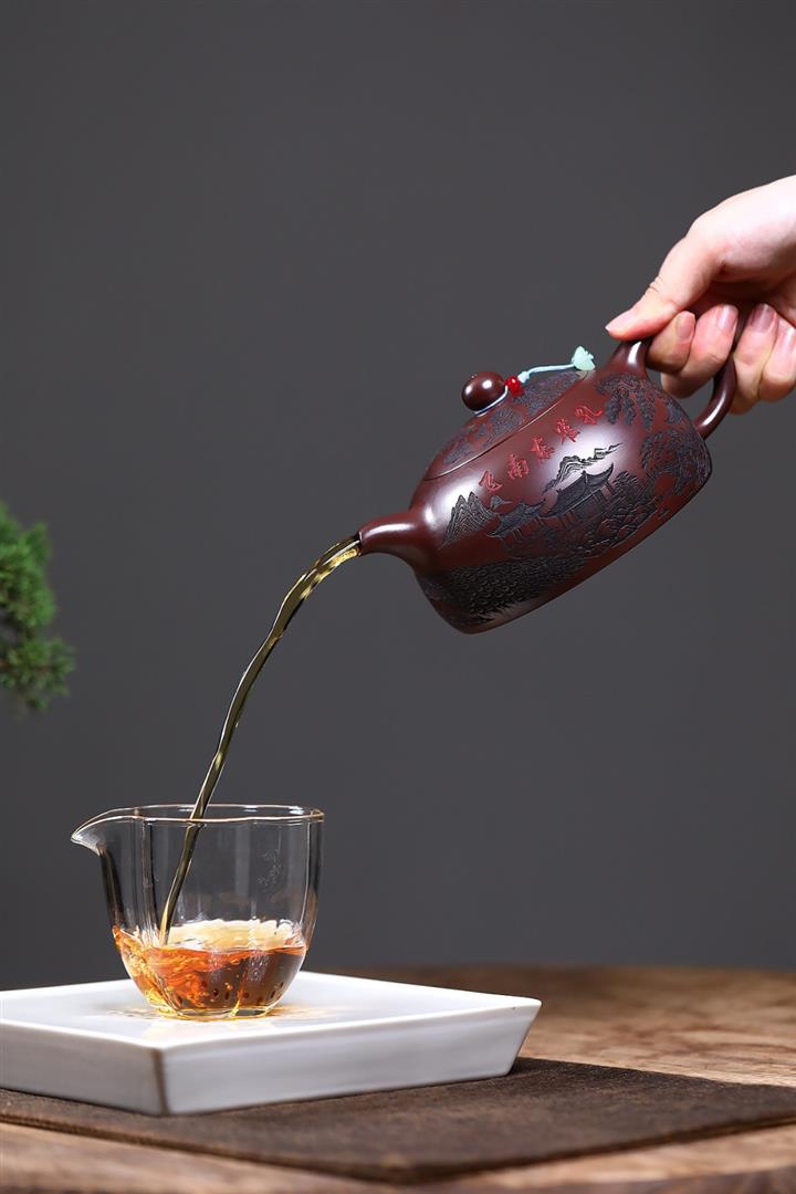 【泥料特點】砂土氣重,似淳實農民,日久使用,漸露鋒芒,養成變化,溫潤莊重。紫砂是壹種雙重氣孔結構的多孔性材質,氣孔微細,密度高。用紫砂壺沏茶,不失原味,且香不渙散,得茶之真香真味。紫砂使用越久,壺身色澤越發光亮照人,氣韻溫雅。紫砂壺長久使用器身會因撫摸擦拭,變得越發溫潤光澤。
