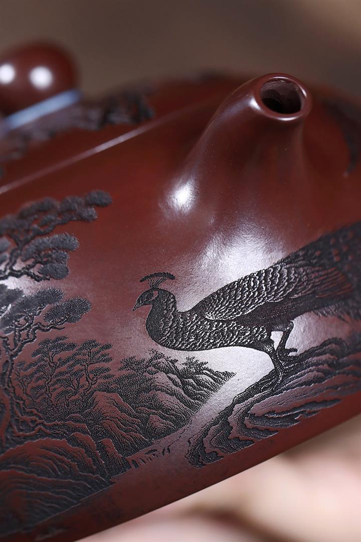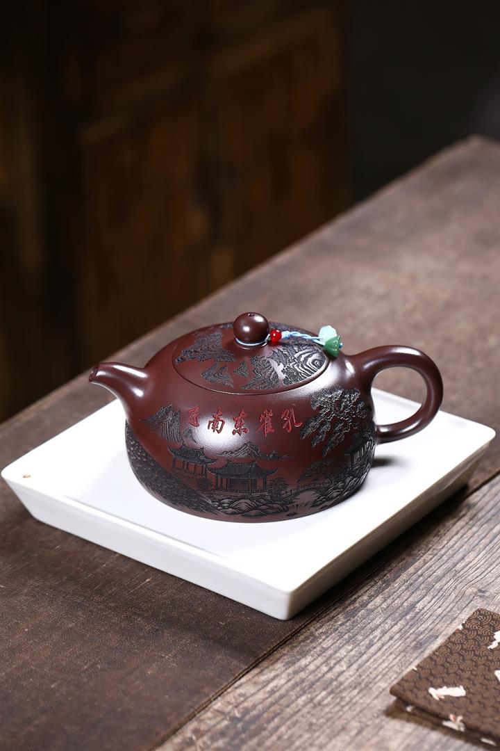 【作品介紹】此款壺形線條流暢,壺把,壺嘴,壺身壹氣呵成栩栩如生,是收藏把玩的好壺,泥料色澤古樸典雅,日久使用,漸露鋒芒,養成變化快,溫潤莊重,用其泡茶,使用的年代久,壺身就溫潤,泡出來的茶湯也就醇郁芳馨。