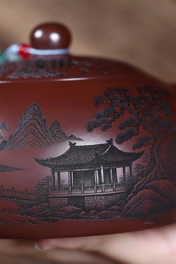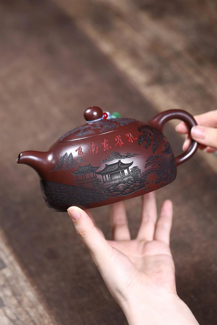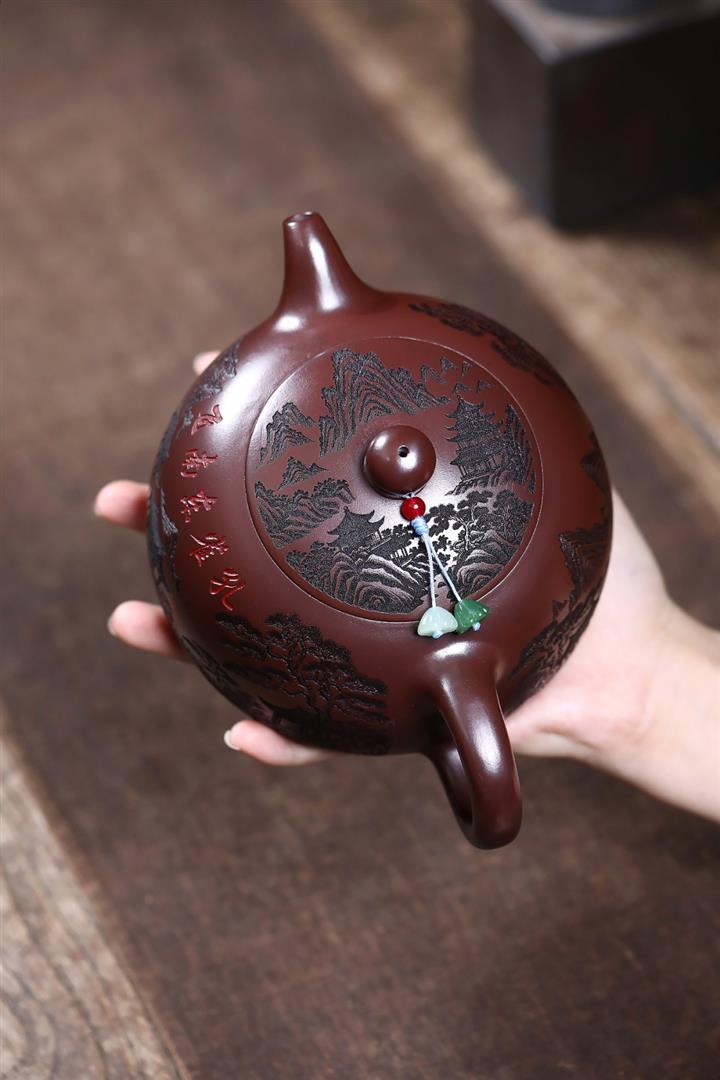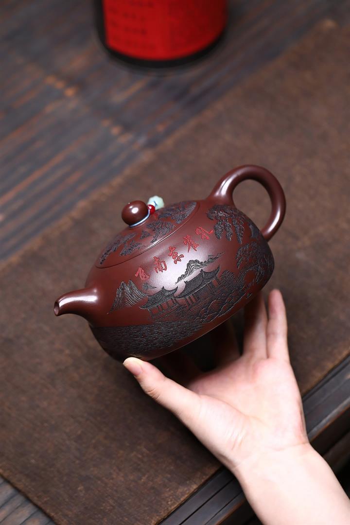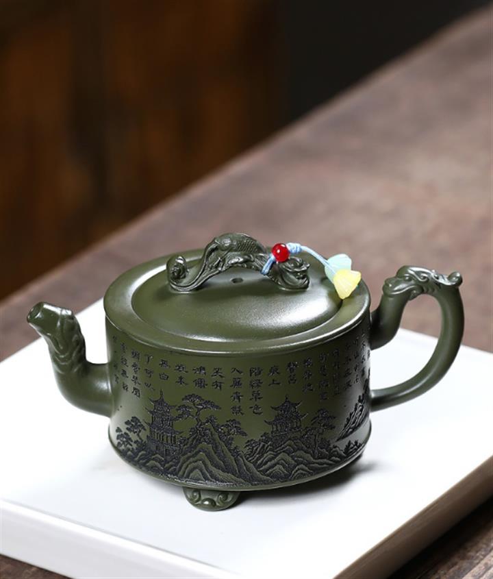 400cc原礦綠泥滿刻江山如畫壺POT7982