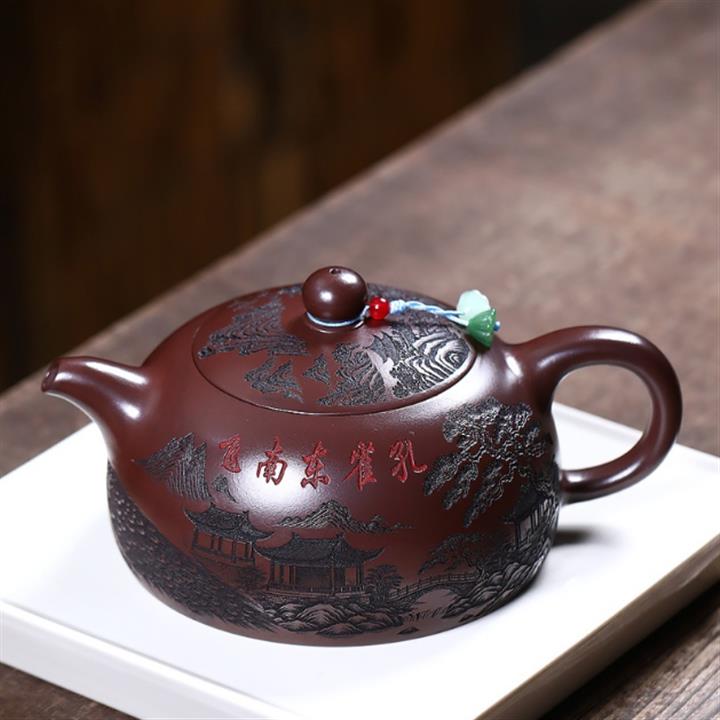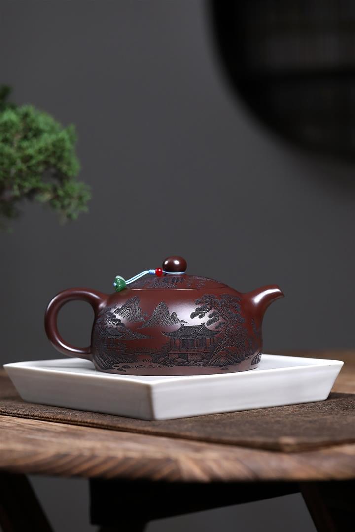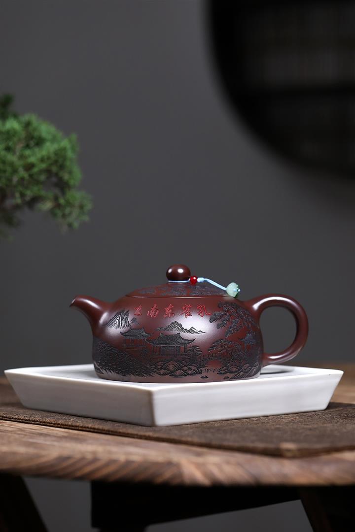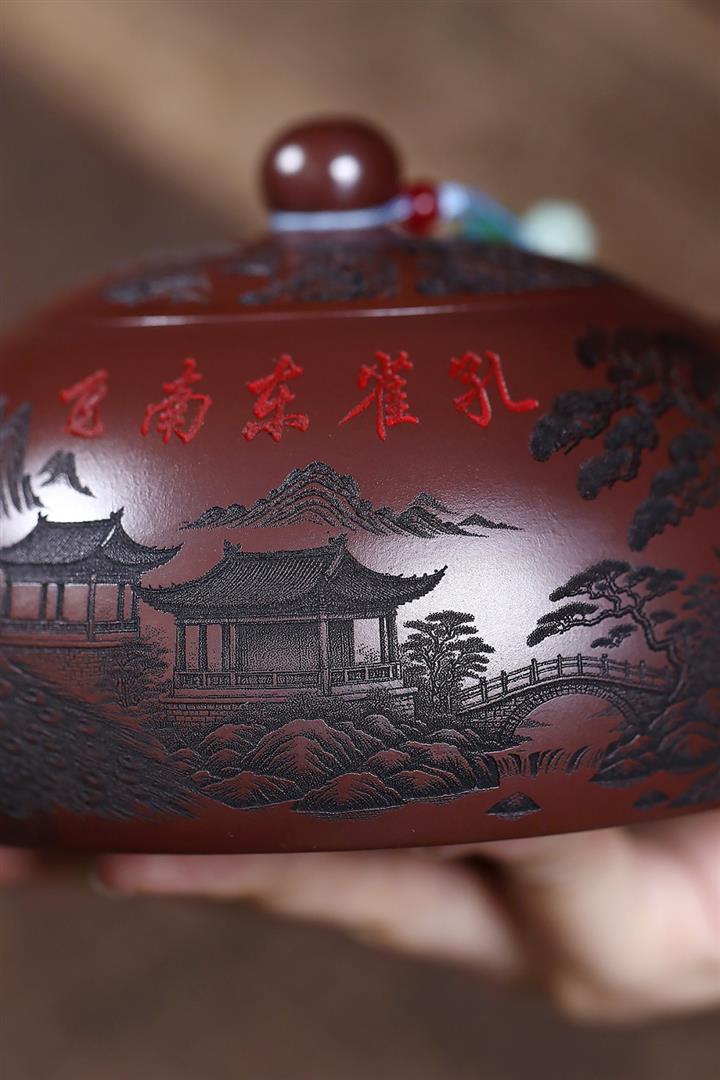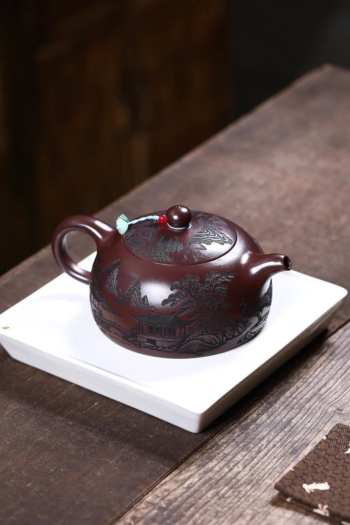 400cc原礦綠泥滿刻江山如畫壺POT7982