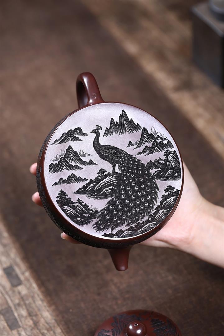 550cc原礦古銅泥孔雀東南飛半月壺POT7975