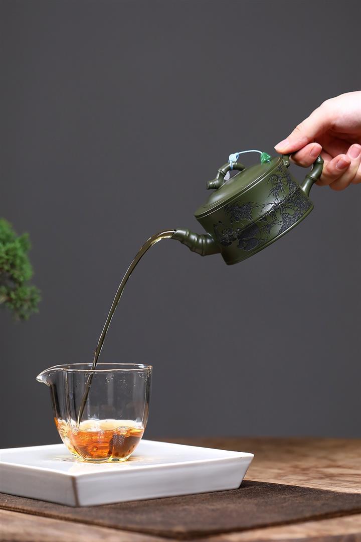 【泥料特點】砂土氣重,似淳實農民,日久使用,漸露鋒芒,養成變化,溫潤莊重。紫砂是壹種雙重氣孔結構的多孔性材質,氣孔微細,密度高。用紫砂壺沏茶,不失原味,且香不渙散,得茶之真香真味。紫砂使用越久,壺身色澤越發光亮照人,氣韻溫雅。紫砂壺長久使用器身會因撫摸擦拭,變得越發溫潤光澤。