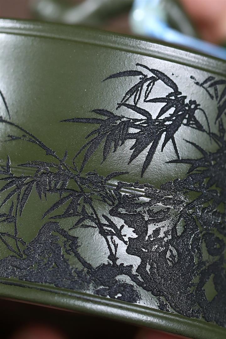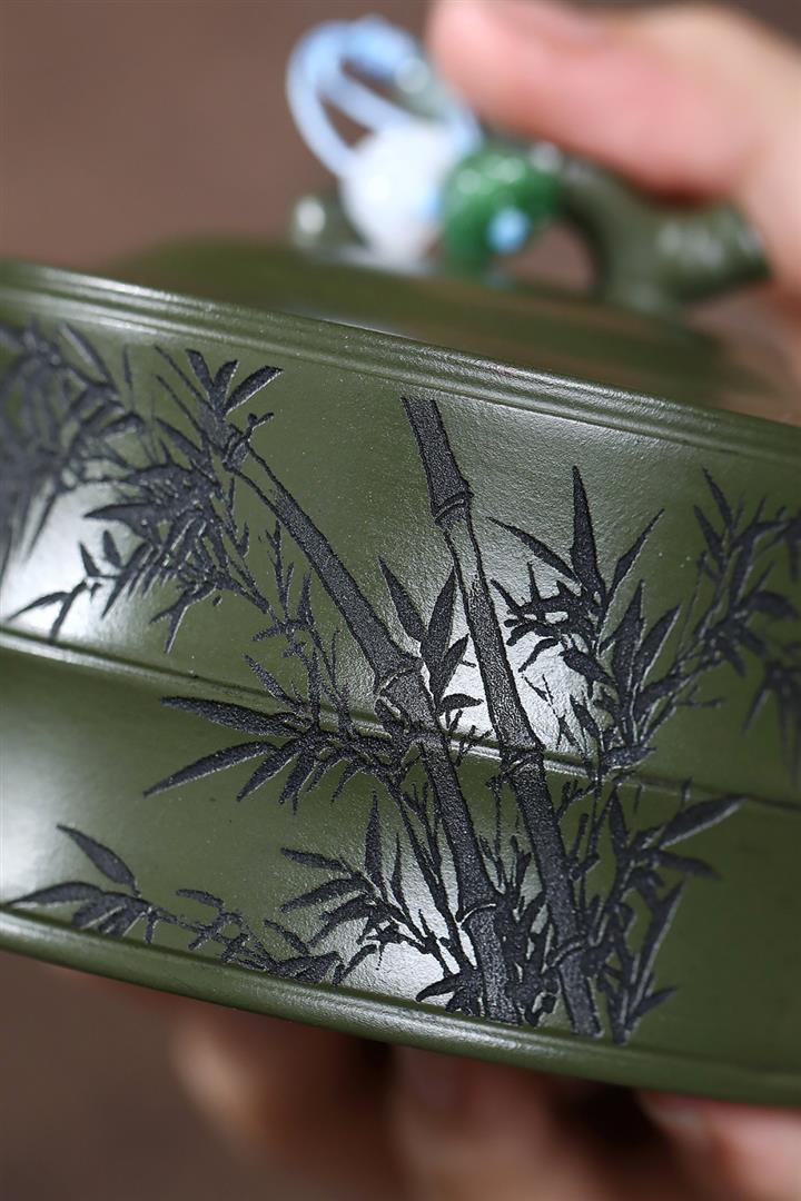 400cc原礦綠泥滿刻江山如畫壺POT7982
