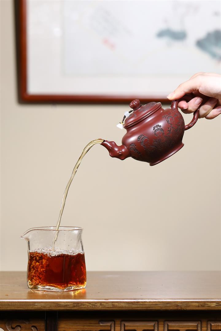 【泥料特點】砂土氣重,似淳實農民,日久使用,漸露鋒芒,養成變化,溫潤莊重。紫砂是壹種雙重氣孔結構的多孔性材質,氣孔微細,密度高。用紫砂壺沏茶,不失原味,且香不渙散,得茶之真香真味。紫砂使用越久,壺身色澤越發光亮照人,氣韻溫雅。紫砂壺長久使用器身會因撫摸擦拭,變得越發溫潤光澤。